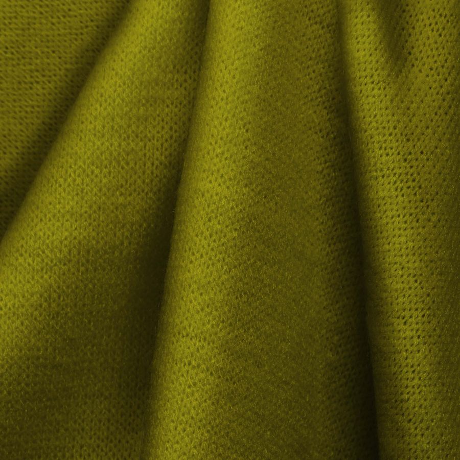 La tela base, Punto Jersey de Tacto Algodón - Atenas, es una tela de punto compuesta por 81% de poliéster, 15% de acrílico y 4% de elastano, con un gramaje de 239 gr/m2 y un ancho de 150 cm. El color liso impreso en esta tela es Verde Olivo, cuyo CMYK es 36 26 99 10. Este color es un tono secundario que combina la frescura del verde con la profundidad y elegancia del marrón, lo que lo hace ideal para la temporada de otoño/invierno.