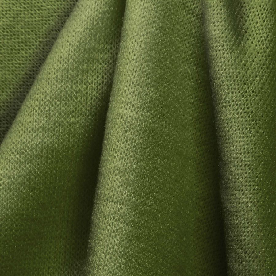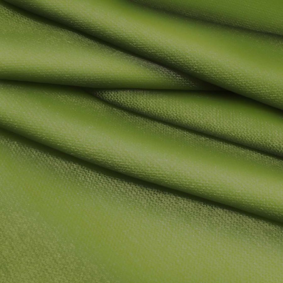 La tela base es Punto Jersey de Tacto Algodón - Atenas, con una composición de 81% POLIÉSTER, 15% ACRÍLICO y 4% ELASTANO. Su color liso impreso es un tono verde con toques de bronce antiguo, obtenido a partir de las tintas Cyan 63, Magenta 37, Yellow 100 y Black 27, con un CMYK de 63 37 100 27. Este color secundario simboliza la esperanza y la conexión con la naturaleza, y técnica mente hablando, se caracteriza por ser vibrante y con gran luminosidad.