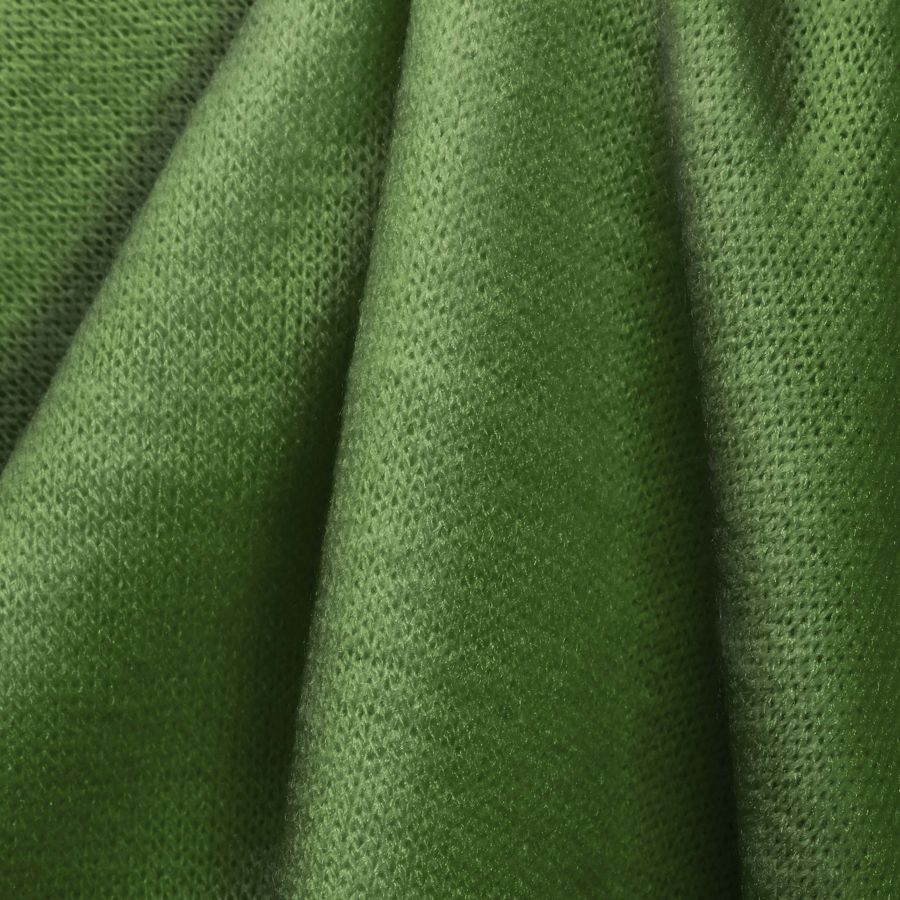 La tela base - Punto Jersey de Tacto Algodón - Atenas, presenta un gramaje de 239 gr/m2 y una composición de 81% POLIÉSTER, 15% ACRÍLICO y 4% ELASTANO. Su color liso impreso es un verde oscuro, con un contenido de CMYK de 71 32 100 19. Este color refleja la elegancia y sofisticación que se puede obtener con un matiz apagado y sutil doblemente combinado con la frescura y vitalidad del color verde. El color combina a la perfección con tonos neutros como el gris y el negro, así como con colores más vivos como el rosa y el amarillo.