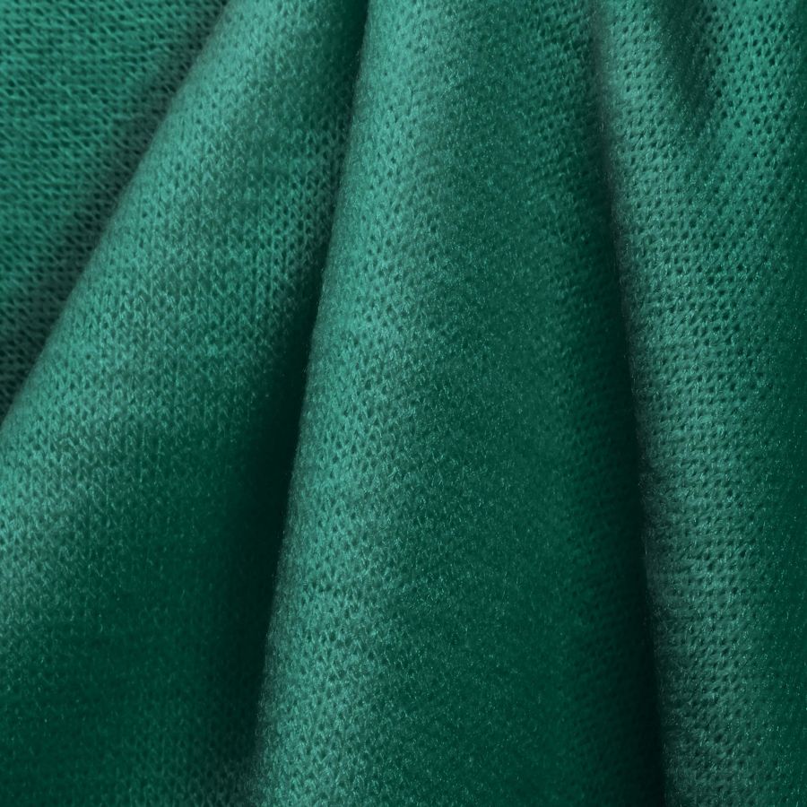 La tela base, Punto Jersey de Tacto Algodón - Atenas, tiene una composición de 81% poliéster, 15% acrílico y 4% elastano, un gramaje de 239 gr/m2 y un ancho de 150 cm. El color liso impreso es verde mar profundo, representado por los valores de CMYK 89 33 69 26. Este color simboliza la tranquilidad y la estabilidad, y técnicamente puede combinarse con tonos tierra o beige y azules oscuros. El tejido está impreso con el color liso a una sola cara por impresión digital textil, por lo que presenta una alta definición y precisión en el color. Las características generales de la tela base son su tacto suave y elástico. En cuanto a sus aplicaciones, es apta para la creación de prendas de moda como jerseys, tops, vestidos y cardigans, así como para la confección de accesorios como bufandas y calcetines y para textiles del hogar como mantas y servilletas. Se recomienda no blanquear la tela, lavar a temperaturas máximas de 30ºC y planchar a temperatura fría. El tejido utiliza la tecnología de sublimación con poliéster para la impresión digital textil, que permite la transferencia de tinta a un sustrato por calor y presión, generando imágenes de alta calidad y durabilidad.