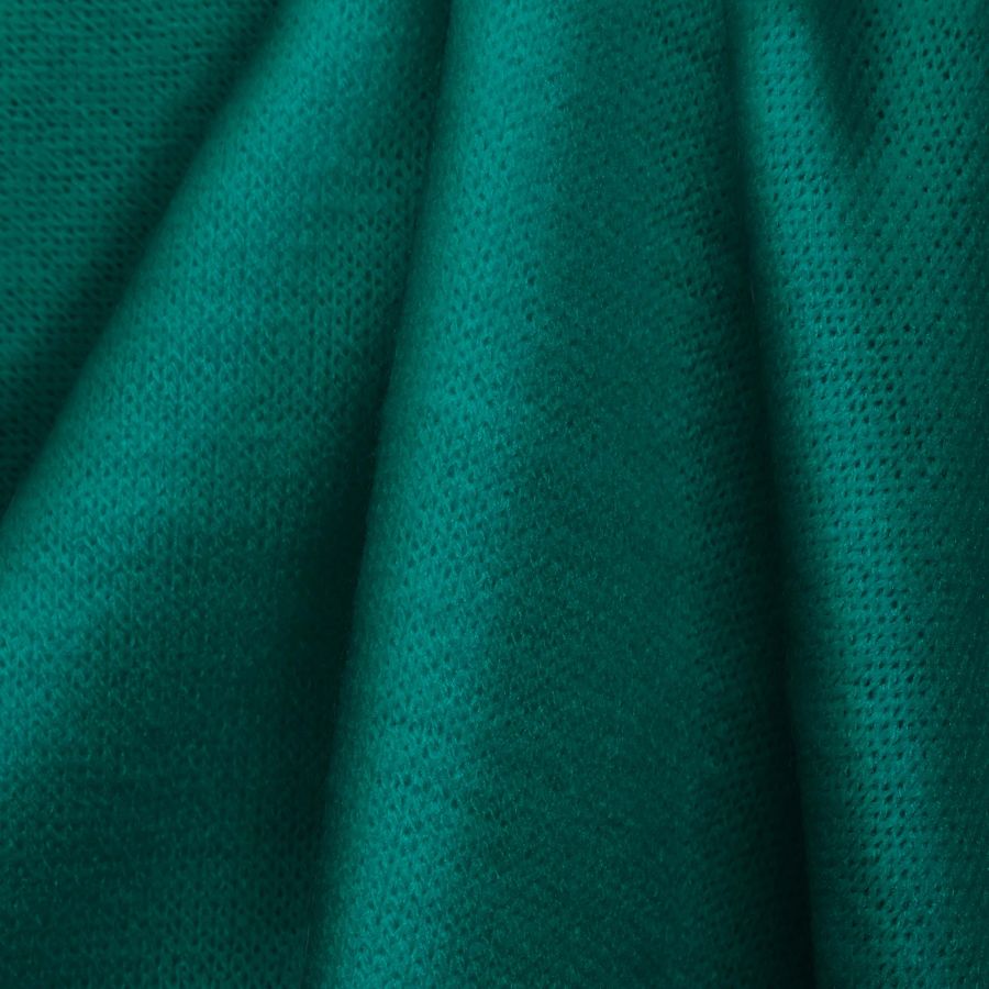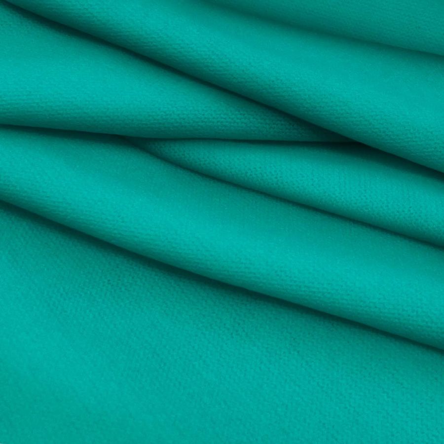 La tela base de esta prenda es el Punto Jersey de Tacto Algodón - Atenas, con una composición de 81% poliéster, 15% acrílico y 4% elastano. El color liso impreso en esta tela es un tono verde suave, que se obtiene con una tinta CMYK de 81% de cian, 18% de magenta, 53% de amarillo y 4% de negro. Este color refleja la frescura y suavidad del mar, con un toque de intensidad.