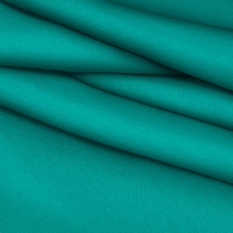 La tecnología de impresión utilizada para fabricar este tejido es la sublimación, la cual usa una tinta especial que se vaporiza y se adhiere al tejido para conseguir una impresión de alta calidad y durabilidad. Esto permite una gran diversidad de diseños y colores, como el verde azulado en este caso, para personalizar tejidos de manera sencilla y eficiente.