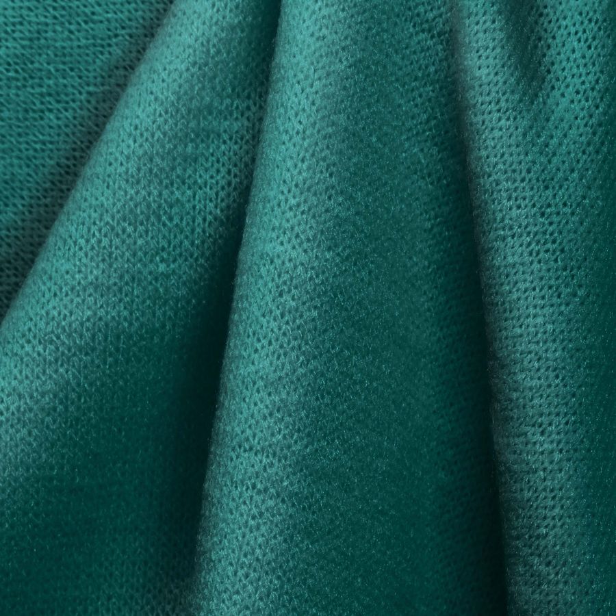 La tela base es el Punto Jersey de Tacto Algodón - Atenas, con composición de 81% poliéster, 15% acrílico y 4% elastano. Su gramaje es de 239 gr/m2 y un ancho de 150 cm. El color liso impreso en esta tela es un verde azulado medio, con un CMYK de 87 34 56 26. Este color es una combinación equilibrada de tonos cian, magenta, amarillo y negro, que le dan una sensación fresca y calmante. Además, se puede combinar muy bien con colores neutros como el blanco, gris y negro o con tonos más fuertes como el rosa o el rojo.