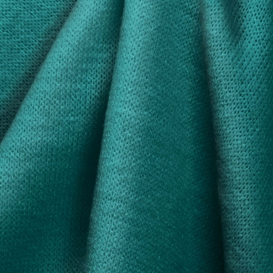 La tela base de este tejido es el Punto Jersey de Tacto Algodón - Atenas, compuesta por un 81% de poliéster, un 15% de acrílico y un 4% de elastano, con un gramaje de 239 gr/m2 y un ancho de 150 cm. El color liso impreso en este tejido es un hermoso verde azulado medio, el cual se ha logrado gracias a una combinación de tintas cian (85), magenta (30), amarilla (50) y negro (17) en el modelo de impresión CMYK.