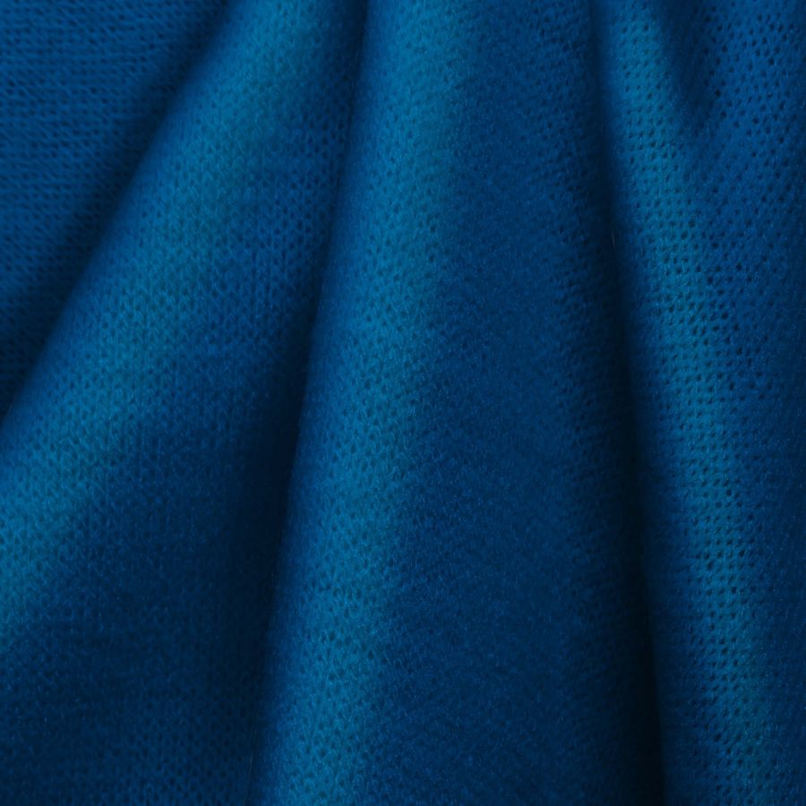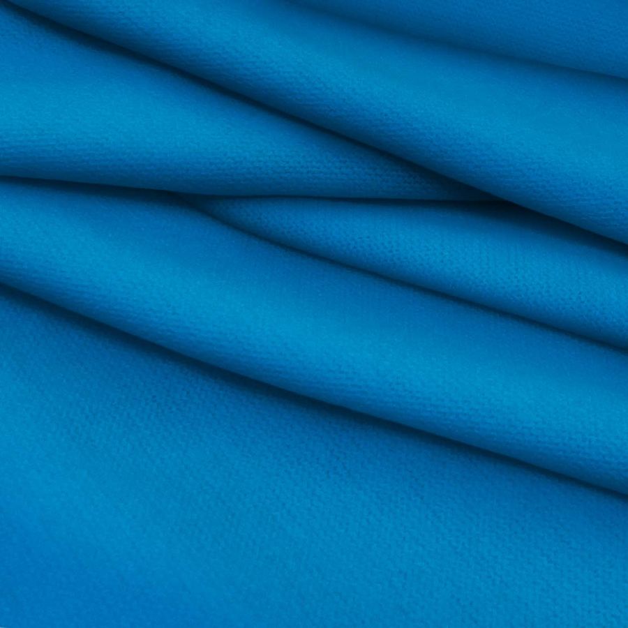 La tela base es el Punto Jersey de Tacto Algodón - Atenas, compuesta por 81% POLIÉSTER, 15% ACRÍLICO, y 4% ELASTANO, con un peso de 239 gr/m2 y un ancho de 150 cm. El color liso impreso es Azul, con una combinación de 89% de Tinta Cyan, 53% de Tinta Magenta, 3% de Tinta Yellow, y 0% de Tinta Black, proporcionando un tono brillante y vibrante de ojos azules. El color secundario simboliza la libertad y la confianza, y combina perfectamente con tonos cálidos como el amarillo o naranja, y con tonos fríos como el blanco o el gris. Es importante destacar que la tela está impresa con el color liso a una sola cara por impresión digital textil, lo que significa que el resultado es un patrón de color con nitidez y precisión.