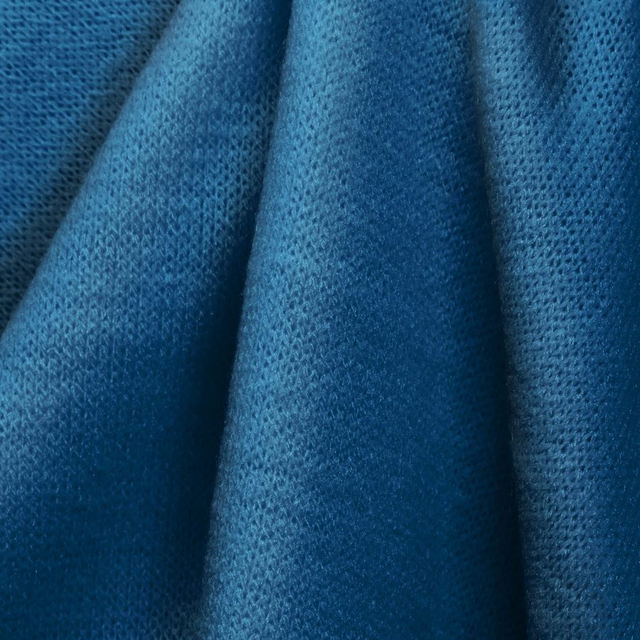 La tela base es el Punto Jersey de Tacto Algodón - Atenas, con una composición de 81% poliéster, 15% acrílico y 4% elastano y un gramaje de 239 gr/m2. El color liso impreso es un azul arrendajo, con un CMYK de 96 64 22 6. Este color secundario es vibrante y enérgico, evocando la vitalidad y el optimismo. Es un color que combina bien con tonos análogos como los diferentes tonos de azul, y también con colores complementarios como el amarillo o el naranja.