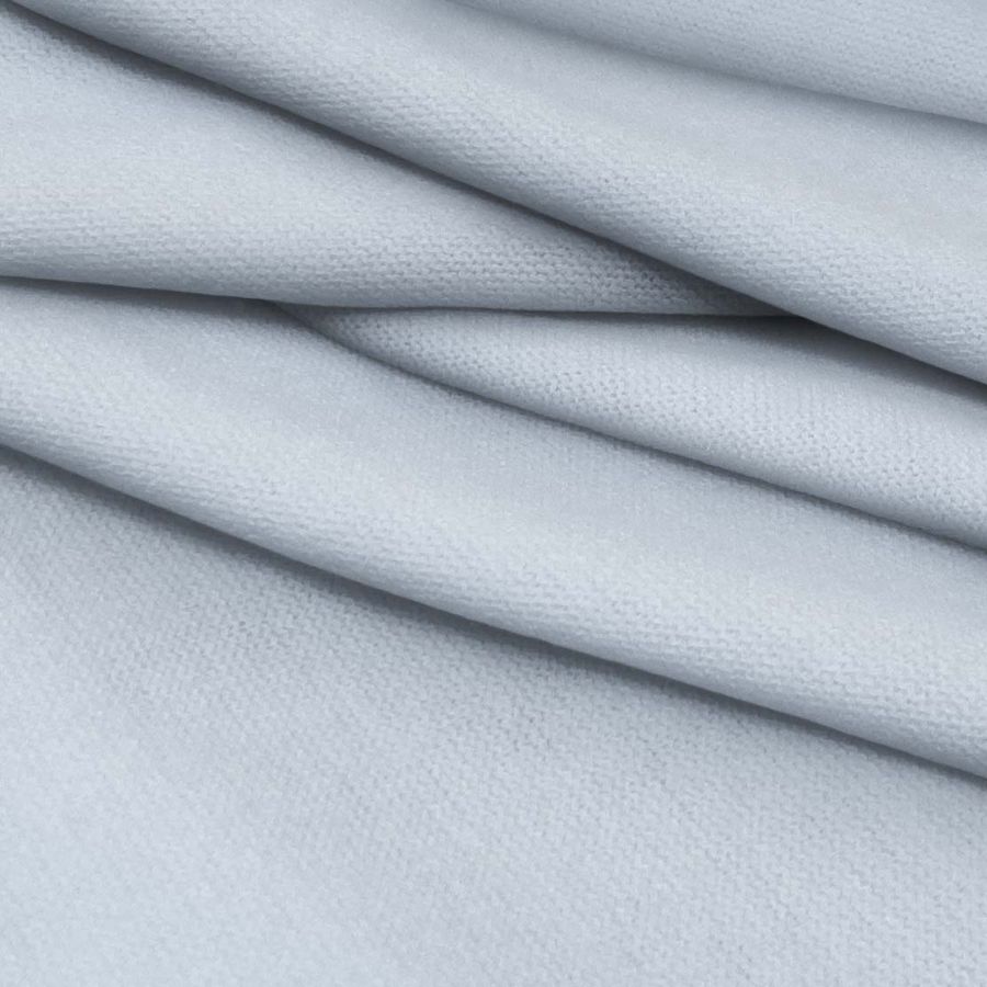 La tela base es el Punto Jersey de Tacto Algodón - Atenas, con una composición de 81% poliéster, 15% acrílico y 4% elastano. Su gramaje es de 239 gr/m2 y su ancho de tela es de 150 cm. El color liso impreso es un azul pastel con un CMYK de 24 9 2 0, lo que significa que contiene principalmente cian y un toque de magenta y amarillo, sin presencia de negro. Este color simboliza la tranquilidad, la serenidad y la frescura, y en combinación con grises, blancos y tonos tierra puede brindar una sensación de calma y armonía.