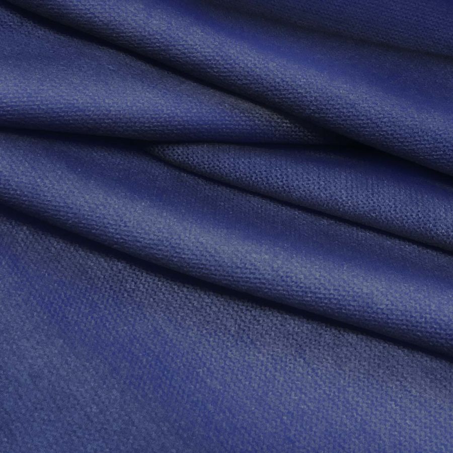 La tela base del tejido es el Punto Jersey de Tacto Algodón - Atenas, un tipo de tela de punto compuesta por un 81% de poliéster, un 15% de acrílico y un 4% de elastano. Tiene un gramaje de 239 gr/m2 y un ancho de 150 cm. El color liso impreso es de un intenso Azul Pizarra Oscura, cuyo CMYK es de 100 90 35 24. Este color es elegante y sofisticado, y combina perfectamente con tonos grisáceos, rojos oscuros y verdes oliva.
