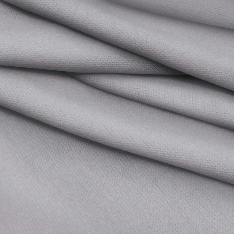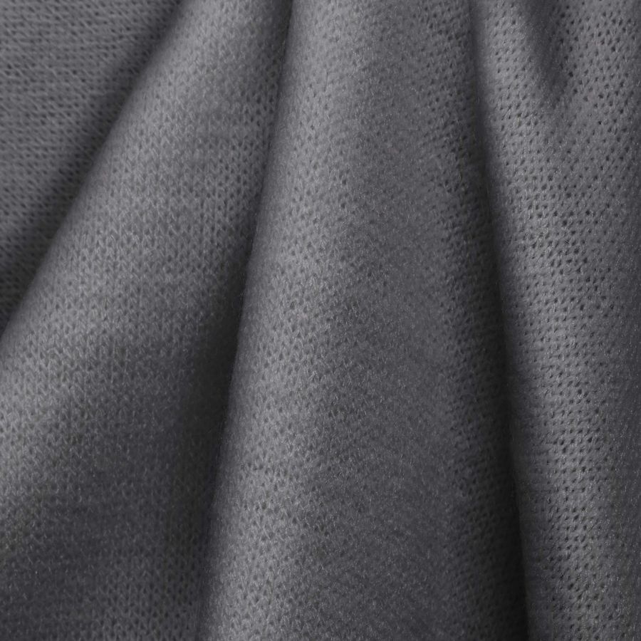La tela base es el Punto Jersey de Tacto Algodón - Atenas, compuesta por un 81% de poliéster, un 15% de acrílico y un 4% de elastano. El color liso impreso es de un elegante tono acorazado gris, generado a través de una impresión digital textil con una combinación de tintas Cyan, Magenta, Yellow y Black en un CMYK de 39 32 28 8. Este tono de gris tiene un matiz frío y oscuro que aporta elegancia y seriedad. El color secundario que se obtiene de la combinación de estas tintas es un tono gris claro con un matiz ligeramente verdoso. Este color combina especialmente bien con otros tonos grises, así como con verdes, azules y morados oscuros.