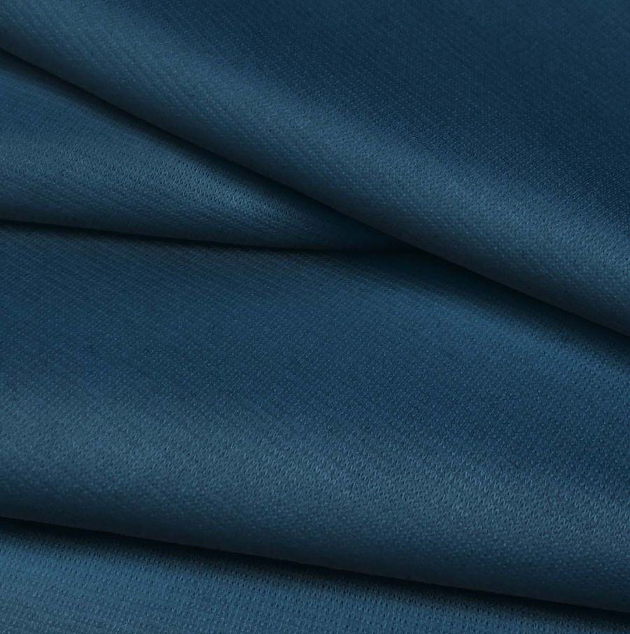 La tela base de este tejido es el Punto Roma Elástico - Lyon, compuesta por 97% poliéster y 3% elastano, con un gramaje de 282 gr/m2 y una anchura de 150 cm. El color liso impreso es una combinación de azul y gris azul oscuro, reflejado en el CMYK: 99 72 42 38. Este color secundario transmite una sensación de calma y equilibrio, evocando al mar y al cielo nublado. Combina bien con otros tonos de azul, blanco y negro. Es importante destacar que el tejido está impreso con el color liso a una sola cara por impresión digital textil, siendo no tintado sino impreso por una sola cara.