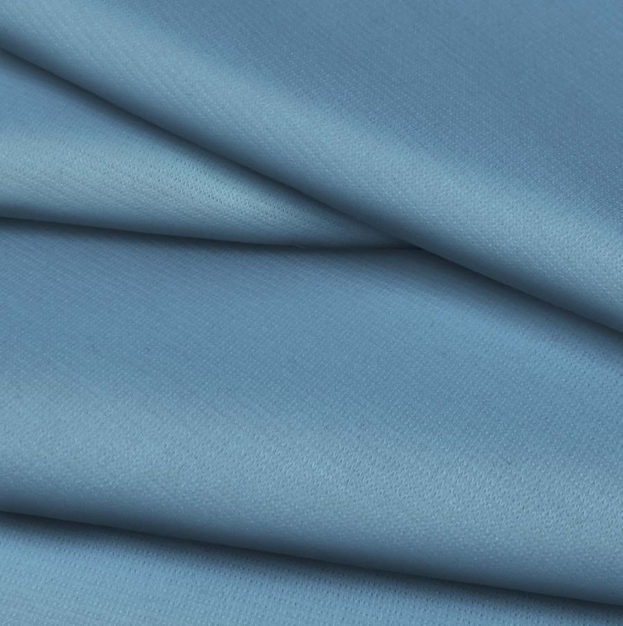 La tela base es una Punto Roma Elástico - Lyon, una tela de punto compuesta por 97% de poliéster y 3% de elastano, con un gramaje de 282 gr/m2 y un ancho de 150 cm. El color liso impreso es Azul Koi, compuesto por las tintas Cyan, Magenta, Yellow y Black en una proporción de 63, 32, 18 y 3 respectivamente, con un valor de CMYK de 63 32 18 3. Este color simboliza la serenidad y la energía, y se asocia con el agua y el cielo. Se combina particularmente bien con tonos verdes y grises.
