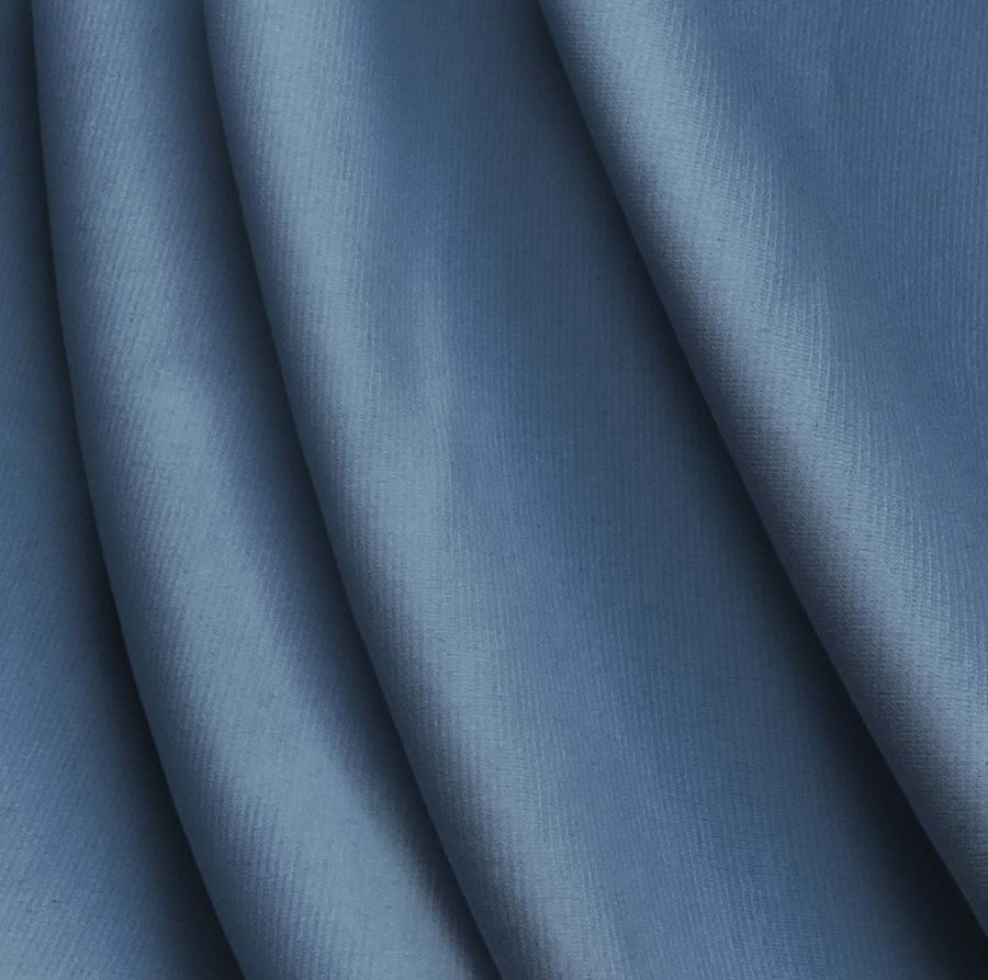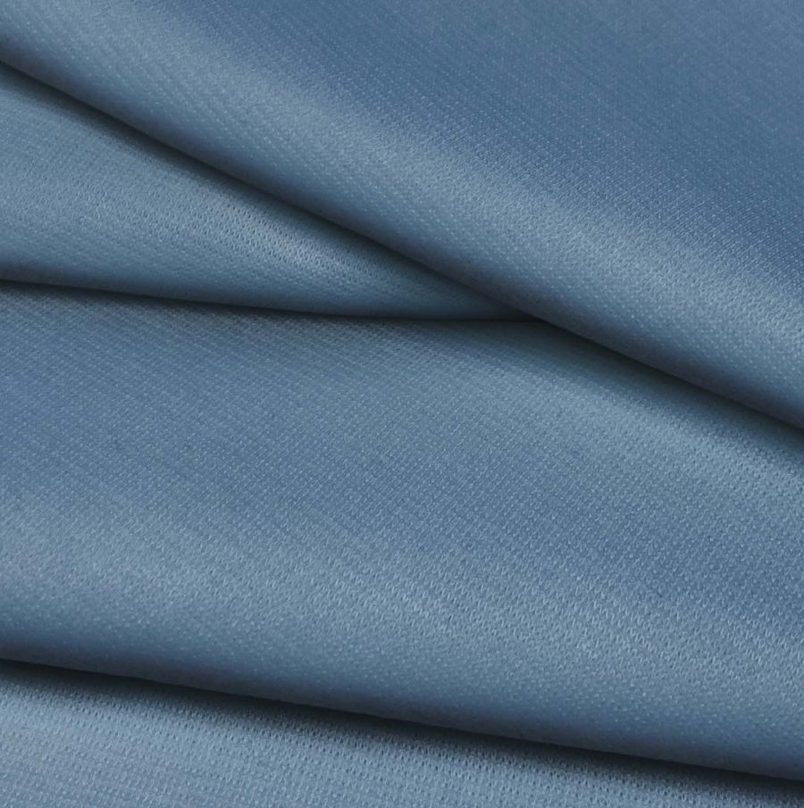 La tela base es el Punto Roma Elástico - Lyon, una tela de punto con composición de 97% poliéster y 3% elastano, con un gramaje de 282 gr/m2 y ancho de 150 cm. El color liso impreso es azul-steel blue, con un CMYK de 68 44 26 9. Este color es una combinación de azul y gris, lo que le da una sensación suave y fresca. Se combina bien con colores como blanco, amarillo, rosa y morado.