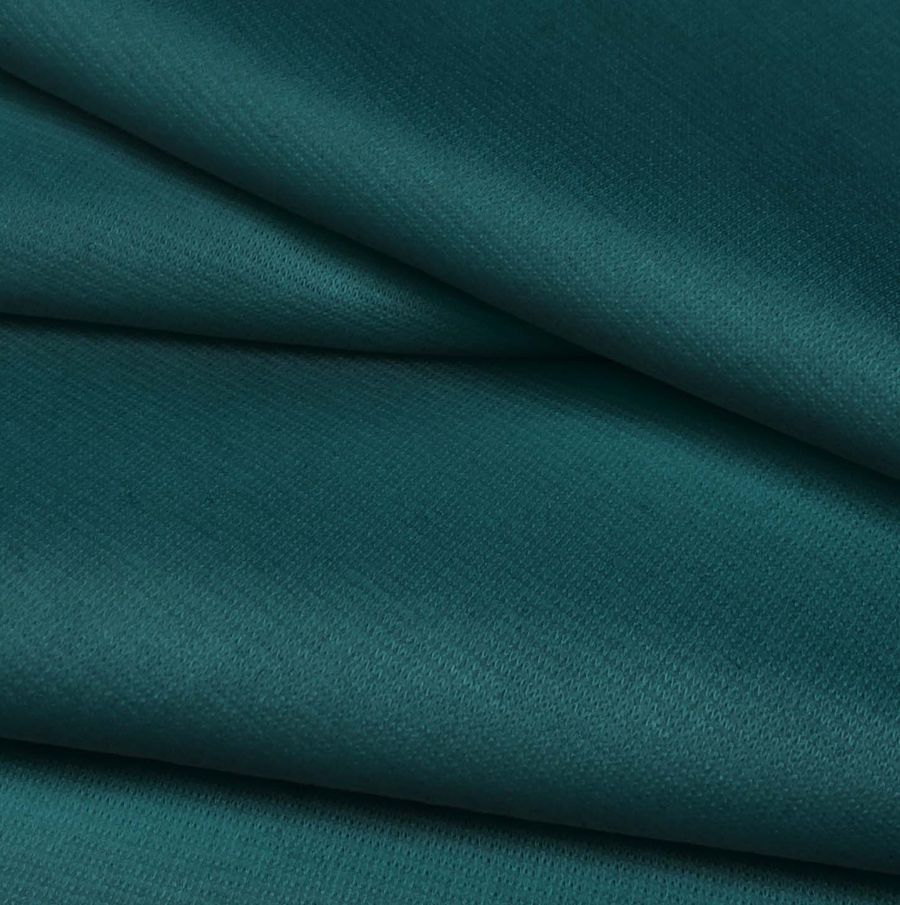La tela base es Punto Roma Elástico - Lyon, una Tela de Punto compuesta por un 97% de poliéster y un 3% de elastano de gramaje 282 gr/m2 con un ancho de 150 cm. Su color liso impreso es Verde Teal Profundo con un CMYK de 93 50 52 49. Este color secundario es un tono verde oscuro con un toque de azul, lo que lo hace emocionalmente equilibrado, comunicando serenidad, estabilidad y equilibrio emocional. Es un color que combina muy bien con tonos verdes como el verde musgo y el verde oliva, así como con tonos amarillos dorados y marrones chocolate.