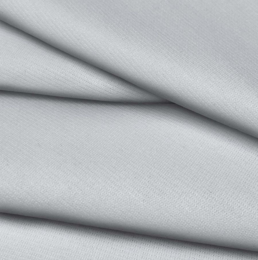 La tela base es Punto Roma Elástico - Lyon, compuesta por un 97% de poliéster y un 3% de elastano. Su gramaje es de 282 gr/m2 con un ancho de 150 cm y está destinada para su uso en prendas de punto como camisetas, tops, jerseys, pantalones, vestidos, así como servilletas para el comedor. El color liso impreso es Azul Agua, con un CMYK de 14 7 6 0, lo que se logra gracias a la tecnología de impresión por sublimación en poliéster. Este color es suave al tacto y se integra perfectamente con otros tonos que van desde los blancos, grises, tonos marrones, beige, plateados, oros y tonos pastel.