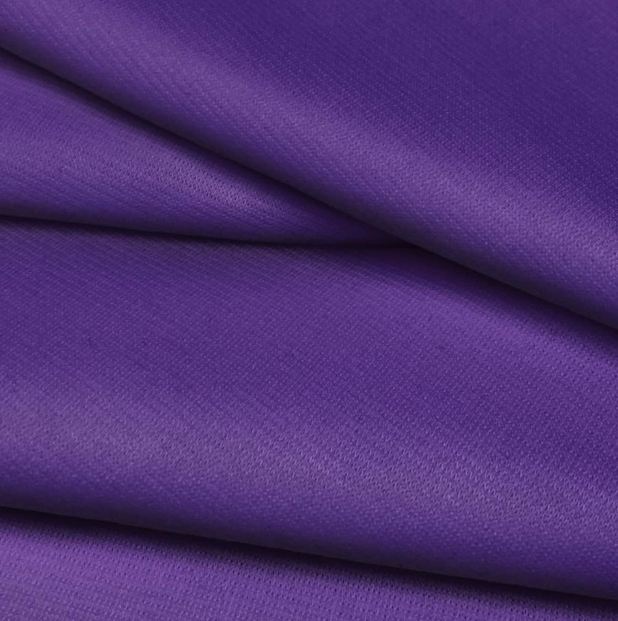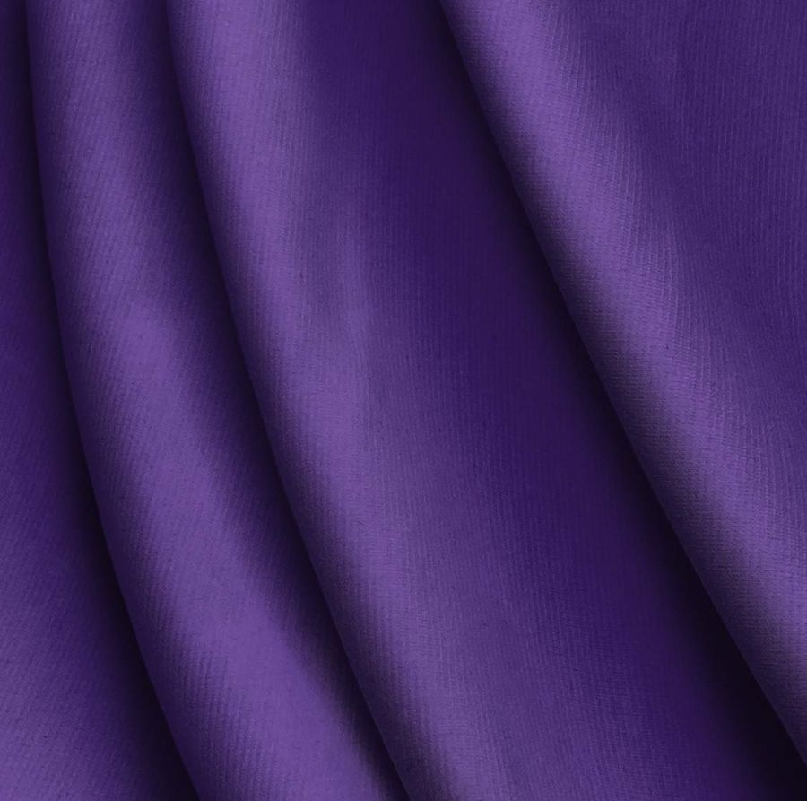La tela base es Punto Roma Elástico - Lyon, una tela de punto compuesta por 97% poliéster y 3% elastano, con un gramaje de 282 gr/m2 y un ancho de 150 cm. En cuanto al color liso impreso, se trata de un tono morado índigo, con una combinación de tintas CMYK de 85 96 4 0, lo que nos da un color intenso y vibrante.