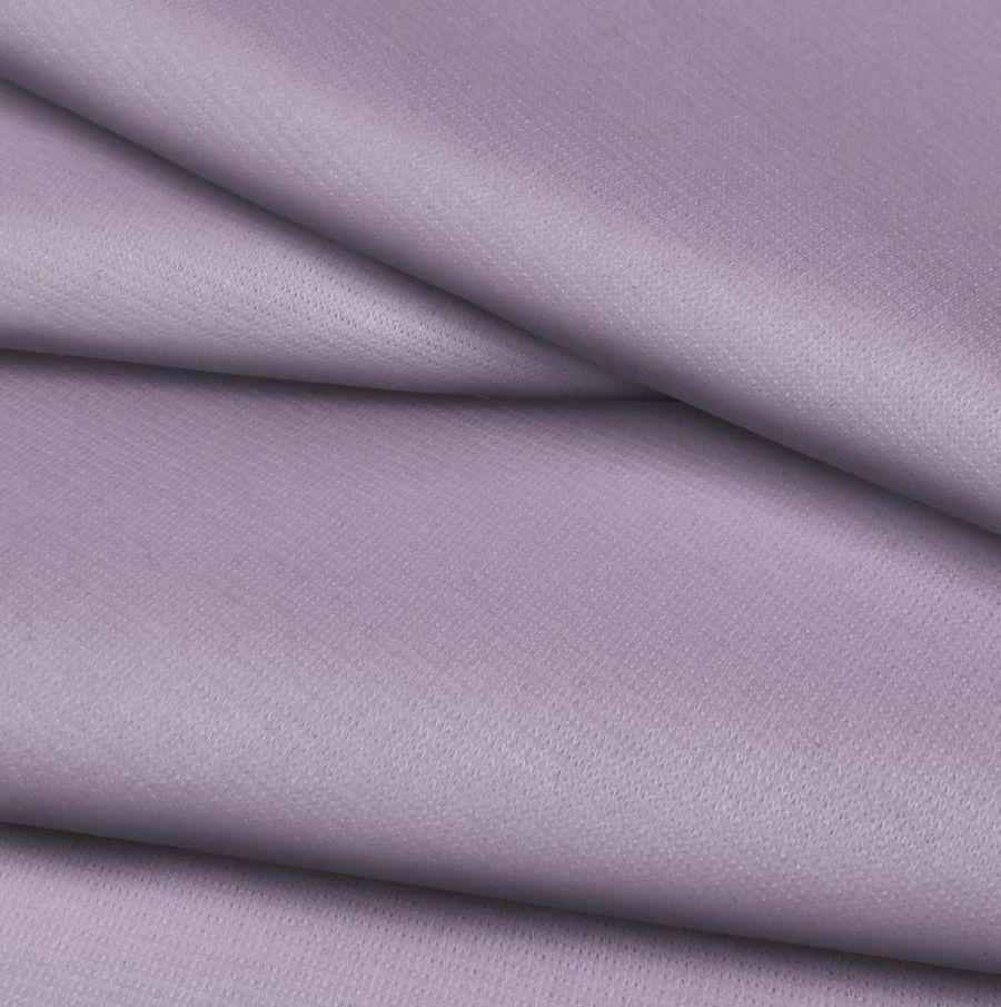 La tela base, Punto Roma Elástico - Lyon, presenta una composición del 97% de poliéster y un 3% de elastano, con un gramaje de 282 gr/m2 y un ancho de 150 cm. El color liso impreso en la tela es un morado lavanda púrpura que se consigue con una tinta magenta del 41%, una tinta cian del 35%, una tinta yellow del 13% y una tinta black del 1%, cuyo código CMYK es 35 41 13 1. Este color se combina de manera complementaria con tonalidades en verde y amarillo para crear una armonía cromática.