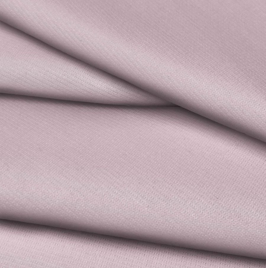 La tela base es el Punto Roma Elástico - Lyon, una tela de punto compuesta por 97% poliéster y 3% elastano, con un gramaje de 282 gr/m2 y un ancho de 150 cm. Su color liso impreso es rosa rosada, cuyo CMYK es 9 28 10 0. Este color tiene un matiz de rosa suave y ligero, con una energía tranquila y delicada. Combina con tonos más profundos y oscuros, como el burdeos o el verde musgo, así como con tonos más brillantes como el amarillo, el coral y el turquesa.
