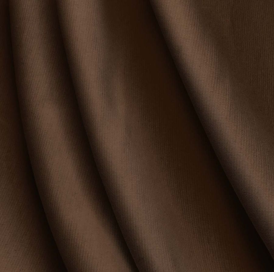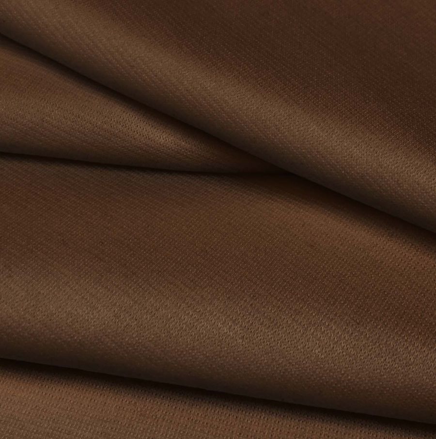 La tela base es el Punto Roma Elástico - Lyon, una tela de punto compuesta por 97% de poliéster y 3% de elastano. Su gramaje es de 282gr/m2 y tiene un ancho de 150 cm. El color liso impreso es marrón y frijol negro, con un valor CMYK de 45 71 88 67. Este color secundario es un tono oscuro y profundo que resulta elegante y sofisticado, y combina especialmente bien con tonos beige, crema y dorados.