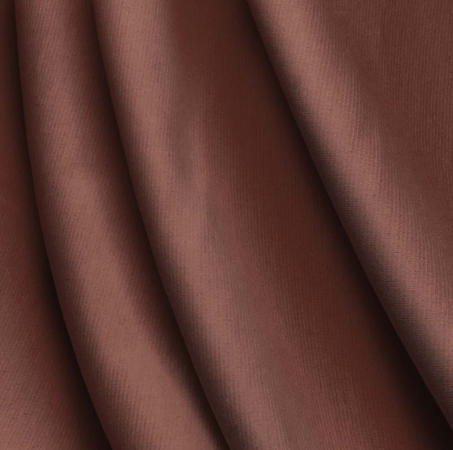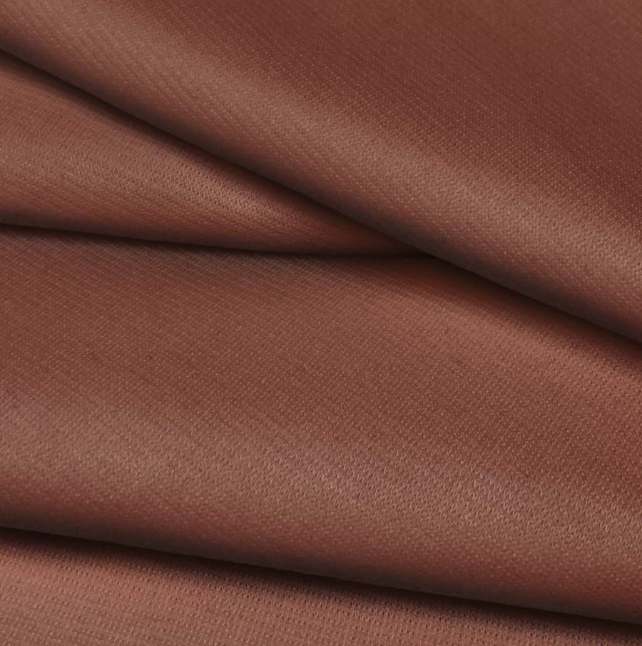 La tela base es el Punto Roma Elástico - Lyon, una tela de punto compuesta por 97% poliéster y 3% elastano con un gramaje de 282 gr/m2 y una anchura de 150 cm. El color liso impreso en esta tela es marrón sepia, con un CMYK de 34 69 68 42. Este color secundario transmite una sensación de calidez y confort, evocando una atmósfera cálida y acogedora. Combina especialmente con tonalidades beige, marrón y blanco, creando un ambiente suave y relajante. La tela está impresa a una sola cara por impresión digital textil.