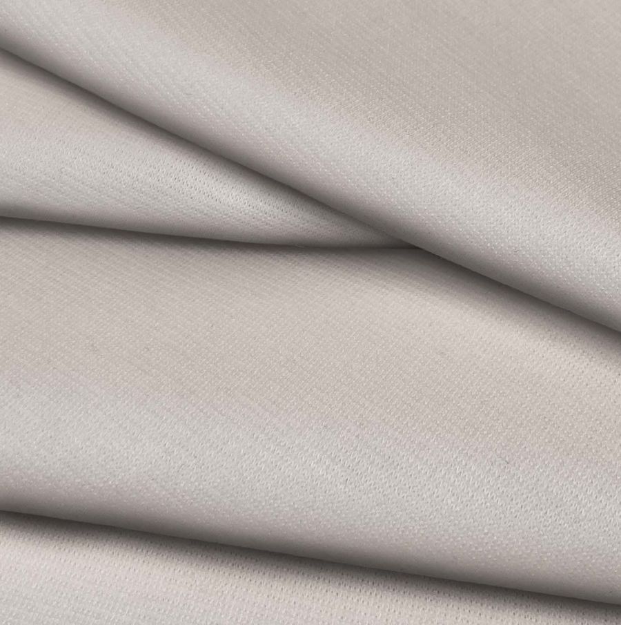 La tela base es Punto Roma Elástico - Lyon, una tela de punto compuesta por 97% poliéster y 3% elastano, con un gramaje de 282 gr/m2 y un ancho de 150 cm. El color liso impreso es Crudo y Plata pálida, con una combinación de tintas de 12 en Cyan, 16 en Magenta, 18 en Yellow y 0 en Black. Este color secundario evoca elegancia y refinamiento, combinando perfectamente con tonos neutros como el blanco, gris y negro, así como con colores vivos y brillantes como el rojo y el azul marino.