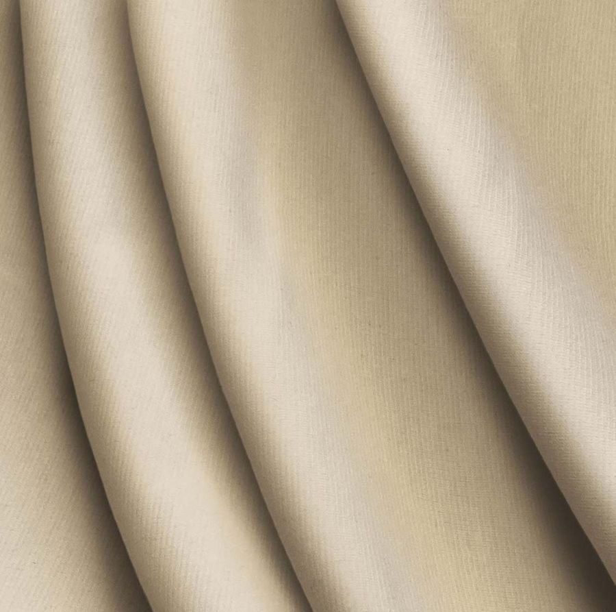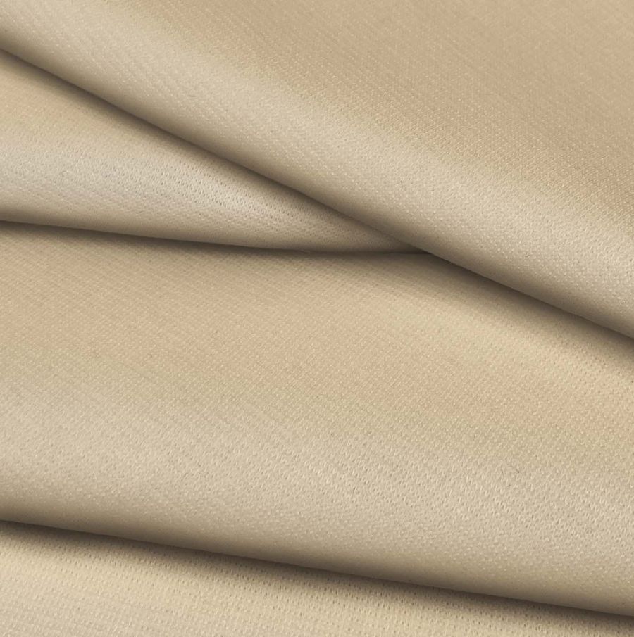 La tela base es Punto Roma Elástico - Lyon, compuesta por 97% POLIÉSTER y 3% ELASTANO con un gramaje de 282 gr/m2 y un ancho de 150 cm. El color liso impreso es una combinación de Naranja y NavajoWhite con un CMYK de 7 20 39 0. Este tono, evocador de la tierra árida y los colores cálidos del verano, combina en particular con colores beige, marrones, ocres y dorados.