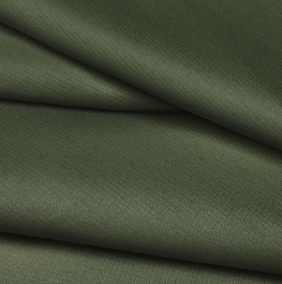 La tela base es el Punto Roma Elástico - Lyon, una tela de punto compuesta por un 97% de poliéster y un 3% de elastano, con un gramaje de 282 gr/m2 y un ancho de 150 cm. El color liso impreso en esta tela es un verde bosque oscuro, con un CMYK de 66 48 74 50. Este color transmite una sensación de frescura y naturalidad, evocando a la vez la serenidad y la profundidad de la naturaleza. El verde bosque oscuro combina a la perfección con tonalidades neutras como el negro, gris, blanco y beige, así como con tonos tierra y dorados.