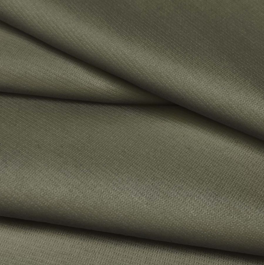 La tela base es Punto Roma Elástico - Lyon, compuesta por 97% poliéster y 3% elastano, con un gramaje de 282 gr/m2, ancho de 150cm y color marrón y verde ejército impreso mediante técnica de sublimación, con un CMYK de 56 45 64 40. El color secundario verde ejército es un tono terroso y natural, evocando la fuerza y estabilidad de la naturaleza. Combina muy bien con otros tonos terrosos, marrones, grises y beiges, y puede aportar energía y vitalidad a una paleta de tonos neutros. La tela está impresa a una sola cara por impresión digital textil, no es un tejido tintado sino impreso por una sola cara.