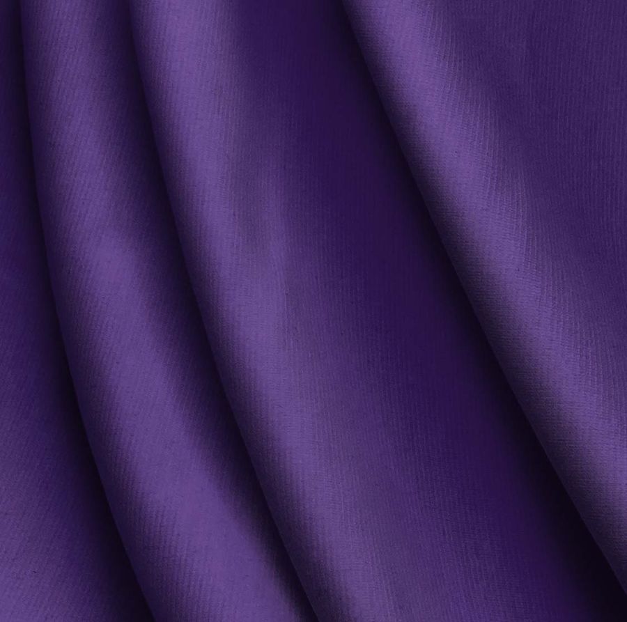 La tela base es el Punto Roma Elástico - Lyon, una tela de punto compuesta por un 97% de poliéster y un 3% de elastano. Se presenta en una anchura de 150 cm y con un gramaje de 282 gr/m2. El color liso impreso en la tela es el Índigo/Morado, con un CMYK de 88 100 14 4. Este color se compone de diferentes tonalidades que se fusionan para crear un efecto simbólico de profundidad, misterio y elegancia. Combina especialmente bien con grises, blancos y negros.