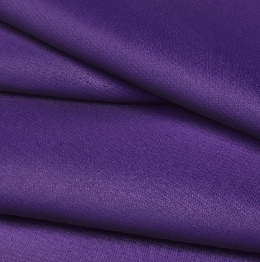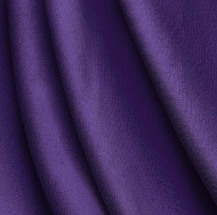 La tela base es Punto Roma Elástico-Lyon, compuesta por un 97% de poliéster y un 3% de elastano, con un gramaje de 282 gr/m2 y un ancho de 150 cm. El color liso impreso es morado, conocido como monstruo morado, con un CMYK de 89 100 15 5. Este color representa la creatividad, la intuición y la misteriosa profundidad de la mente. Combina especialmente bien con tonalidades como el blanco, gris y negro, así como con amarillos y verdes.