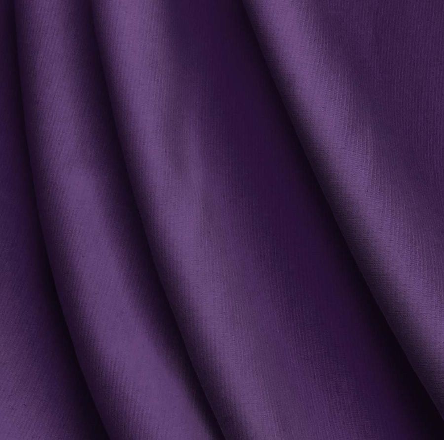 La tela base es el Punto Roma Elástico - Lyon, una tela de punto compuesta por 97% poliéster y 3% elastano, con un gramaje de 282 gr/m2 y ancho de 150 cm. Su color liso impreso es un tono morado oscuro, cuyos valores de CMYK son 83 100 28 17. Este color simboliza la fuerza y la elegancia, y puede combinar especialmente bien con tonos tierra y colores cálidos.