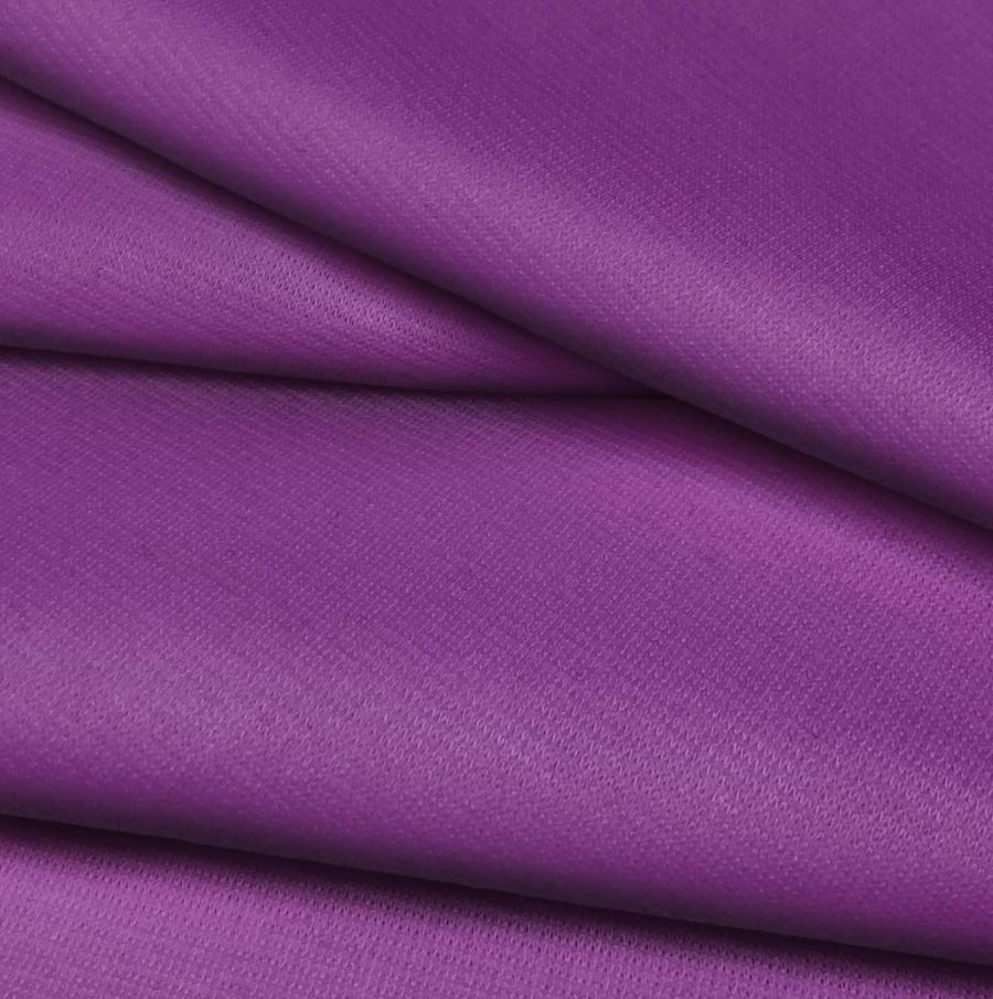 La tela base, Punto Roma Elástico - Lyon, es una tela de punto con una composición de 97% poliéster y 3% elastano, lo que la hace muy elástica y cómoda de usar. Su gramaje es de 282 gr/m2 y tiene un ancho de 150 cm. El color liso impreso en esta tela es un hermoso morado mermelada púrpura, que se logra mediante una combinación de tinta cyan, magenta y amarillo y un 0% de tinta negra en el proceso CMYK, resultando en un gran nivel de saturación. Este color combina perfectamente con tonos neutros como el blanco o el negro, también con tonos cálidos como el rojo o el naranja y contrasta muy bien con tonos fríos como el verde y el azul.
