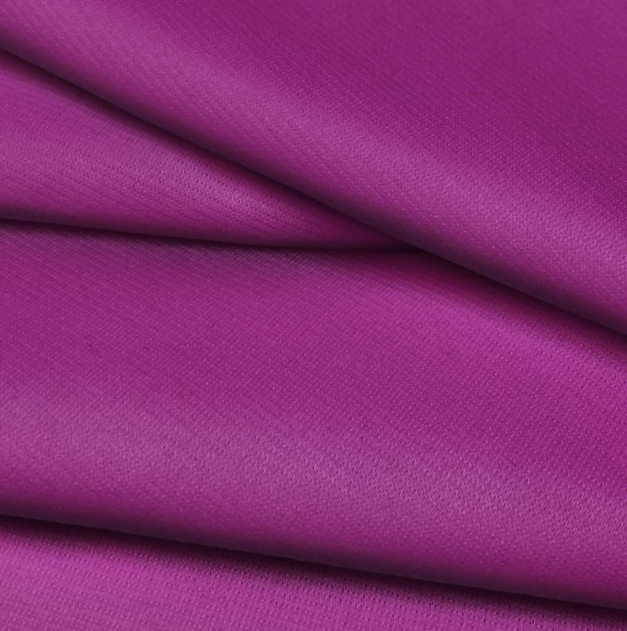 La tela base de este tejido es el Punto Roma Elástico - Lyon, una tela de punto compuesta mayoritariamente por poliéster (97%) y un 3% de elastano, lo que la hace muy elástica y cómoda al uso. Además, cuenta con un gramaje de 282 gr/m2 y un ancho de 150 cm. El color liso impreso en la tela es un morado o púrpura intenso, con una tinta cyan de 51, magenta de 97, yellow de 4 y una falta total de tinta black con un CMYK de 51 97 4 0. Este color ofrece una sensación de misterio, elegancia y sofisticación.