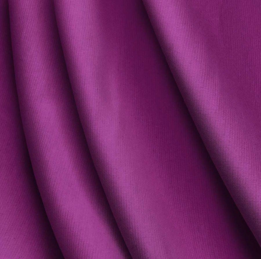 En cuanto a las características del color impreso, su textura es suave y aterciopelada al tacto, muy similar al de la tela base. A nivel técnico, se trata de una tela impresa por una sola cara mediante la tecnología de impresión digital textil. En lo que respecta a la combinación de colores, el morado o púrpura combina muy bien con tonalidades neutras como el blanco, el negro o el gris. También combina perfectamente con tonos vibrantes como el amarillo, el verde o el rosa.