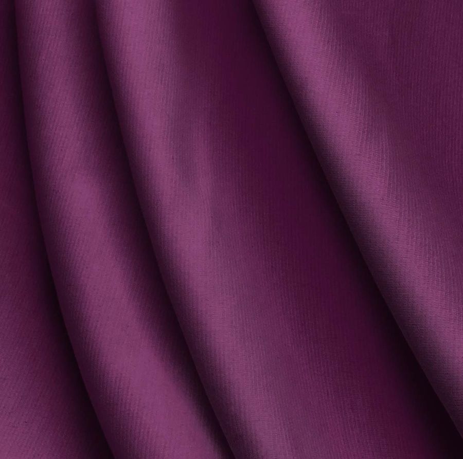 La tela base es Punto Roma Elástico - Lyon, una tela de punto con una composición del 97% de POLIÉSTER y el 3% de ELASTANO, de 282 gr/m2 y 150 cm de ancho. El color liso impreso es Morado Berenjena, con un CMYK de 58 100 29 27, el cual se combina muy bien con tonos oscuros como el negro o marrón y tonos claros como el beige, blanco o gris.