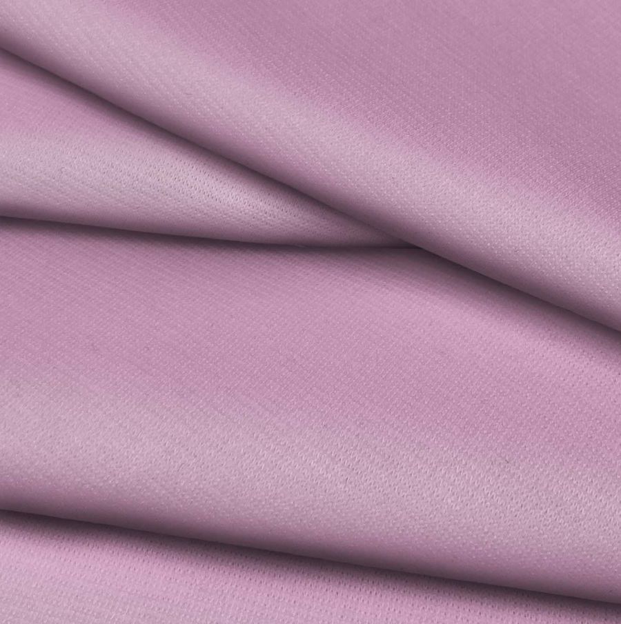 La tela base es el Punto Roma Elástico - Lyon, una tela de punto con una composición de 97% poliéster y 3% elastano, y un gramaje de 282 gr/m2. Tiene un ancho de 150 cm y es de color liso impreso en tonos rosa y violeta, con un CMYK de 14 45 4 0. Este color secundario tiene una simbología de dulzura, romanticismo e imaginación. Además, combina perfectamente con tonos neutros como el gris o el beige, así como con colores fríos como el azul o el verde.