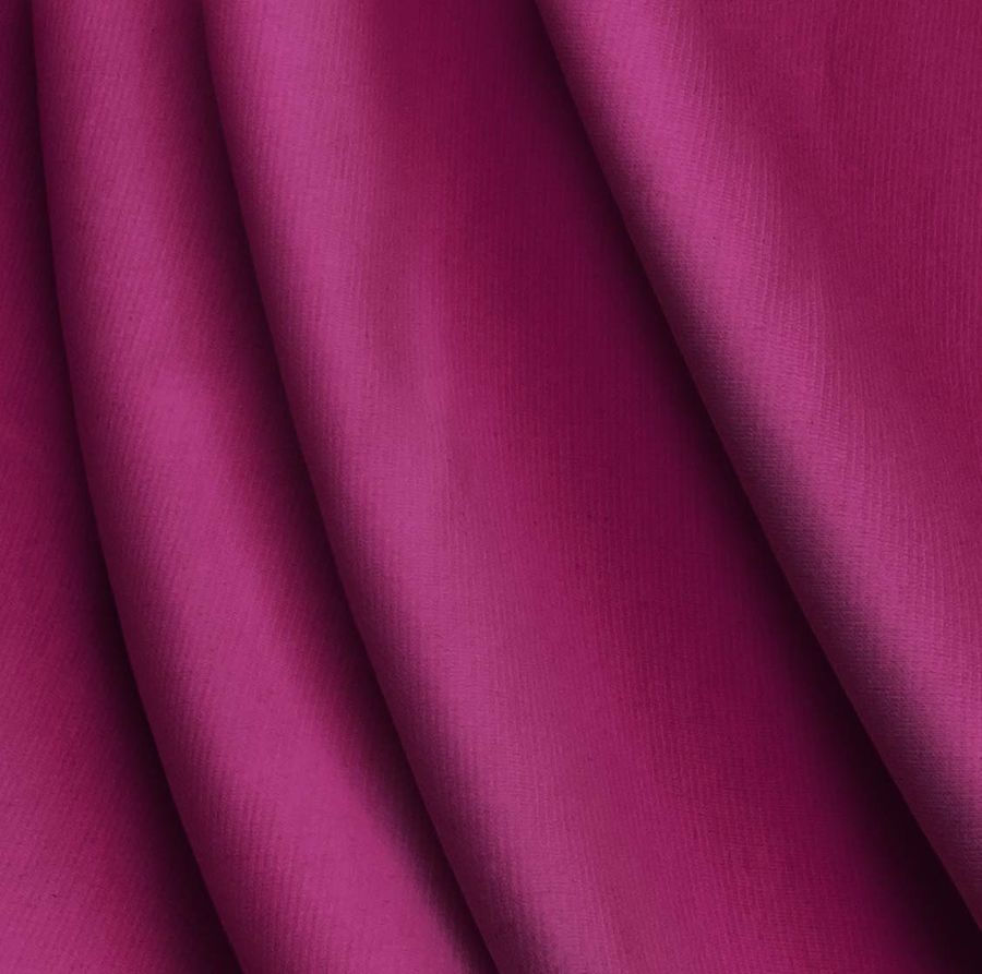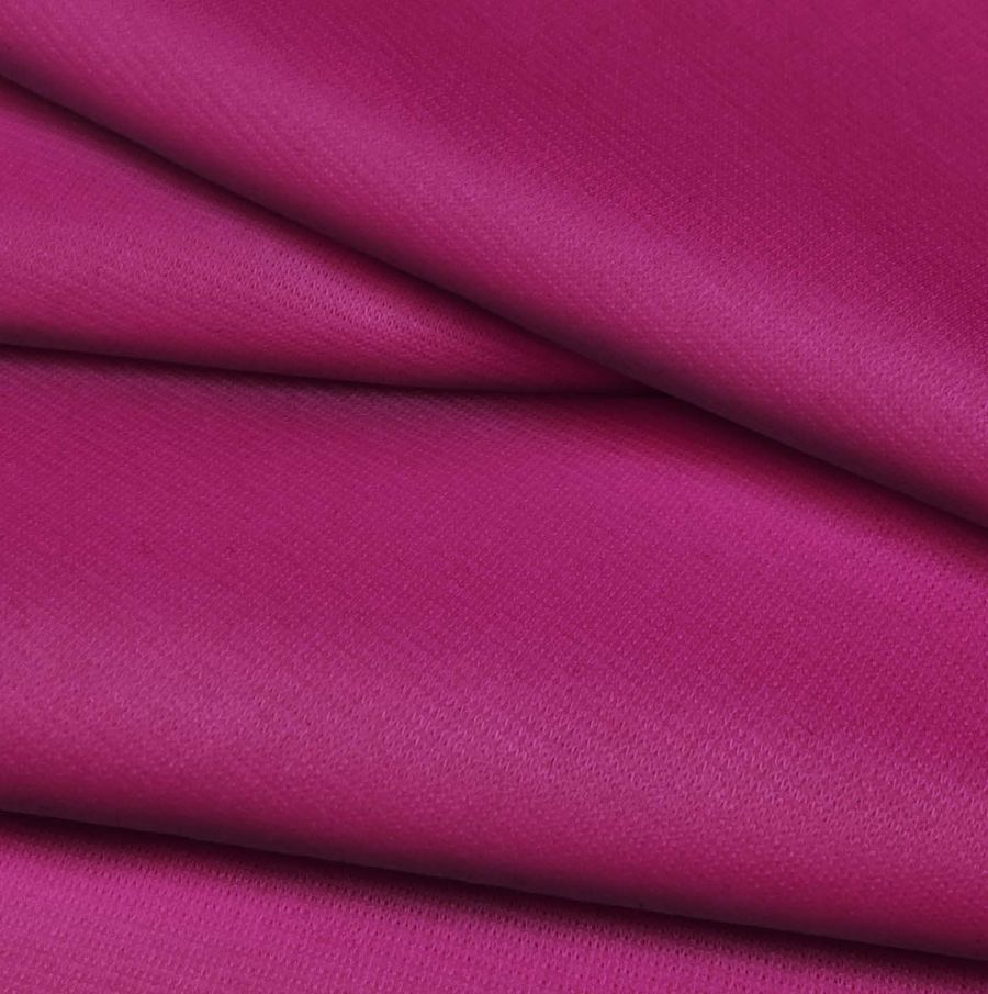 La tela base es el Punto Roma Elástico - Lyon, una tela de punto compuesta por un 97% de poliéster y un 3% de elastano. Su gramaje es de 282 gr/m2 y su ancho de 150 cm. En cuanto a su color liso impreso, este es un morado ciruela cuyo CMYK es 34 100 21 13. El color secundario del morado ciruela es el azul oscuro, lo que le da una tonalidad rica y profunda. Además, el morado ciruela combina bien con tonos neutros como el blanco o el negro, así como con colores como el gris, el rosa claro y el naranja.