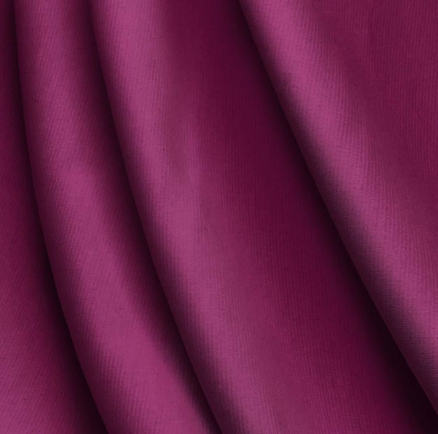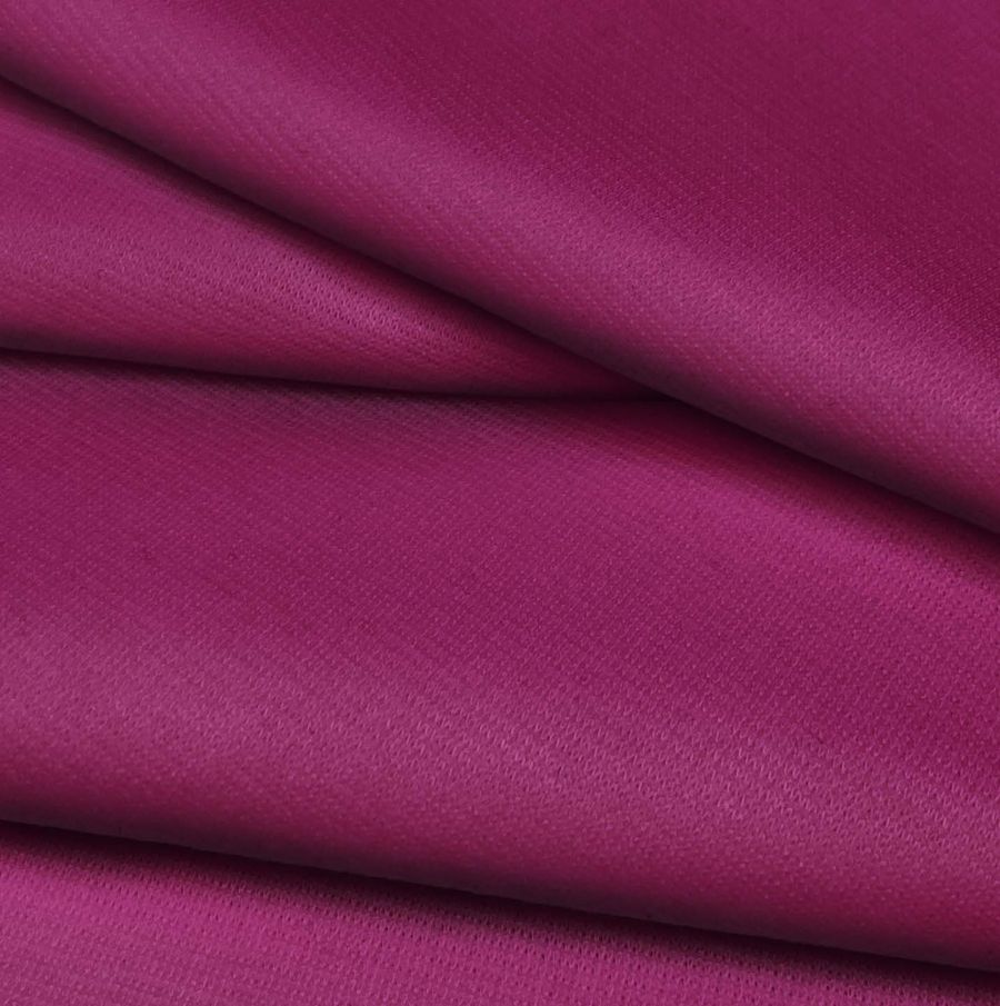 La tela base es el Punto Roma Elástico - Lyon, una tela de punto compuesta por 97% poliéster y 3% elastano, con un gramaje de 282 gr/m2 y un ancho de 150 cm. El color liso impreso es Morado- Dark Magenta, con un CMYK de 40 100 26 25. Este color secundario simboliza la pasión y la intensidad, con un toque de misterio y sofisticación que lo hace perfecto para la moda de invierno. Además, combina muy bien con tonos fríos como los grises y azules, y con tonos cálidos como el naranja y el amarillo.