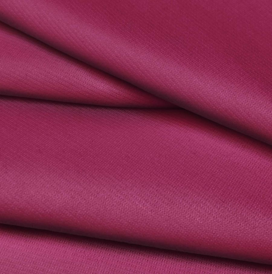 La tela base es Punto Roma Elástico - Lyon, una tela de punto compuesta por 97% poliéster y 3% elastano, con un gramaje de 282 gr/m2 y un ancho de 150 cm. El color liso impreso es Rojo/Rosa quemado, con una combinación de tintas Cyan: 30, Magenta: 95, Yellow: 33 y Black: 24, reflejando un CMYK de 30 95 33 24.