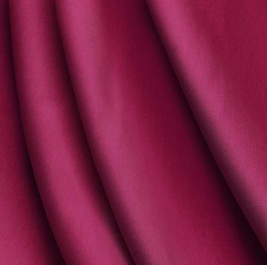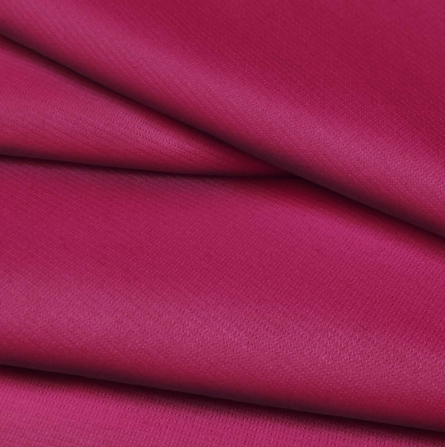 La tela base es Punto Roma Elástico - Lyon, una tela de punto compuesta por un 97% de poliéster y un 3% de elastano, con un gramaje de 282 gr/m2 y un ancho de 150 cm. El color liso impreso es Rosa quemado, con una combinación de tintas CMYK de 25% de Cyan, 100% de Magenta, 38% de Yellow y 21% de Black. Este color transmite una sensación de calidez, fuerza y vitalidad, y combina especialmente bien con tonos grises oscuros, negros y blancos.