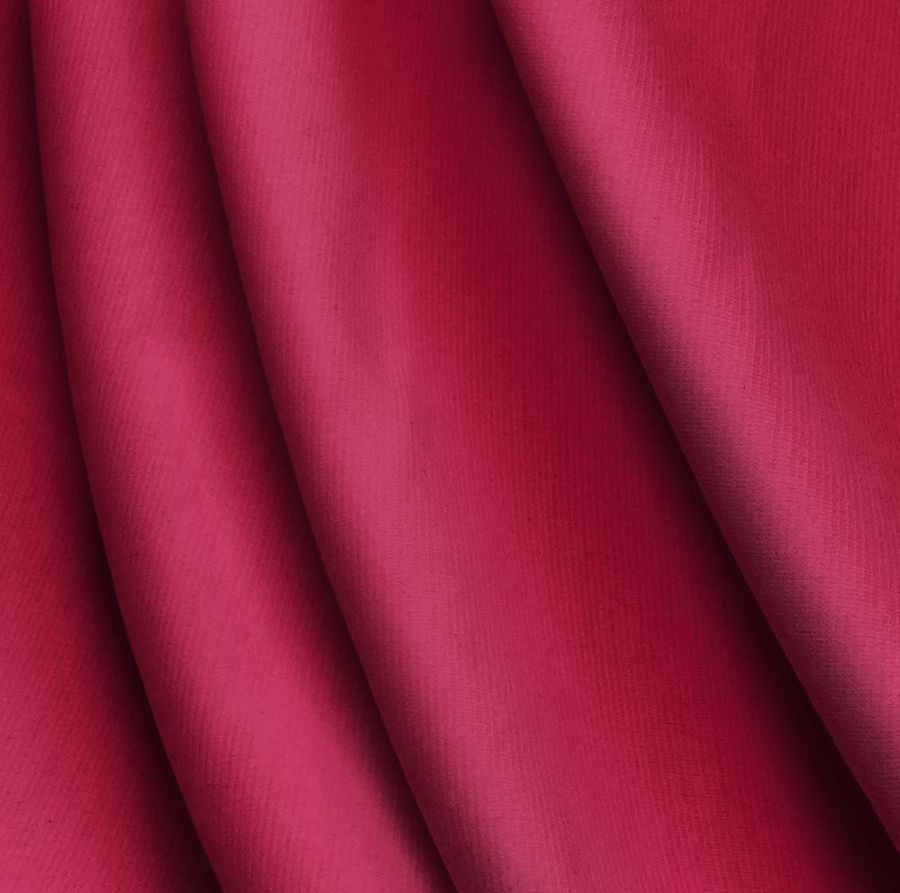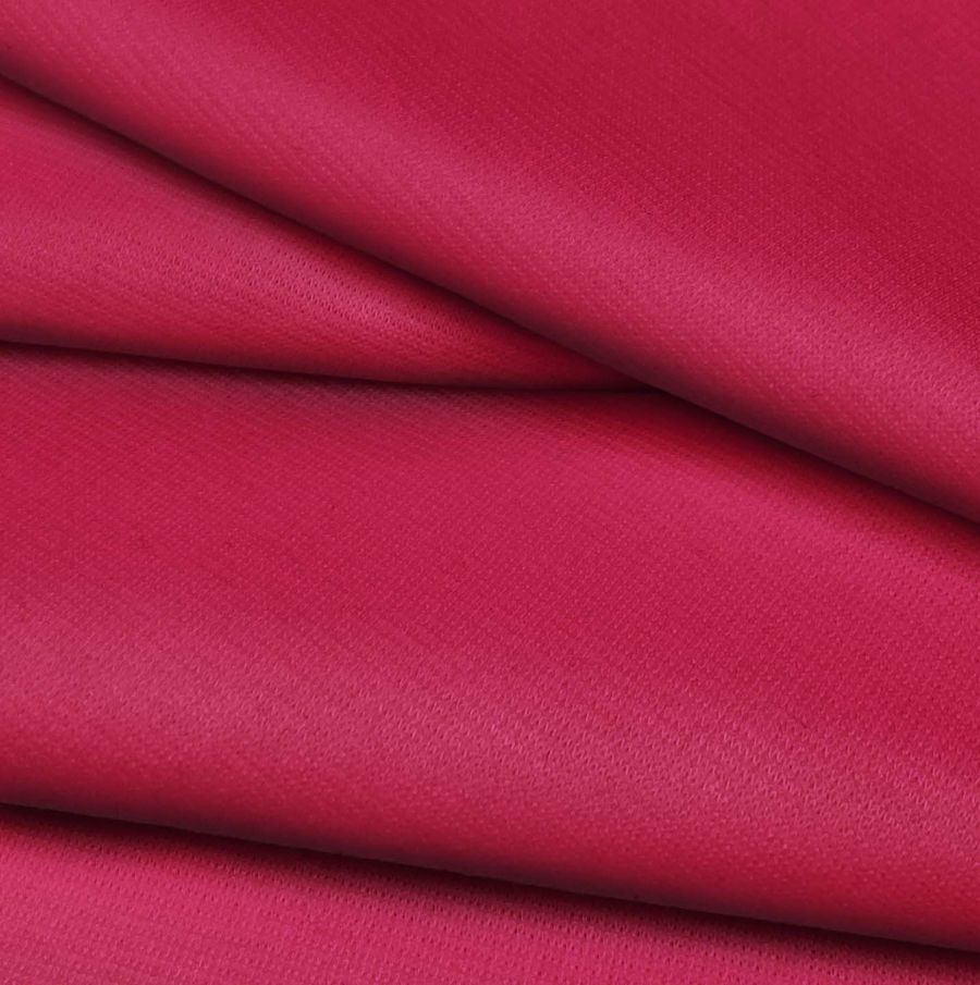 La tela base es el Punto Roma Elástico - Lyon, una tela de punto compuesta por un 97% de poliéster y un 3% de elastano, con un gramaje de 282 gr/m2 y un ancho de 150 cm. Su color liso impreso es un deslumbrante rojo granate brillante, con un contenido CMYK de 18 100 58 8. Este color simboliza la pasión y la energía, y es particularmente adecuado para prendas de alta moda. El color granate, como secundario de este tono, combina perfectamente con tonos neutros cálidos como el beige, el marrón claro y el gris carbón.