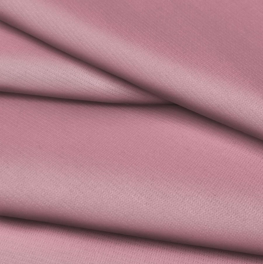 La tela base es el Punto Roma Elástico - Lyon, un tejido de punto compuesto por un 97% de poliéster y un 3% de elastano, con un gramaje de 282 gr/m2 y un ancho de 150 cm. El color del tejido liso impreso es una mezcla de rosa y marrón, con un CMYK de 14 51 25 1. Este color tiene una connotación suave y cálida, y combina muy bien con tonalidades neutras, como los blancos y los grises.