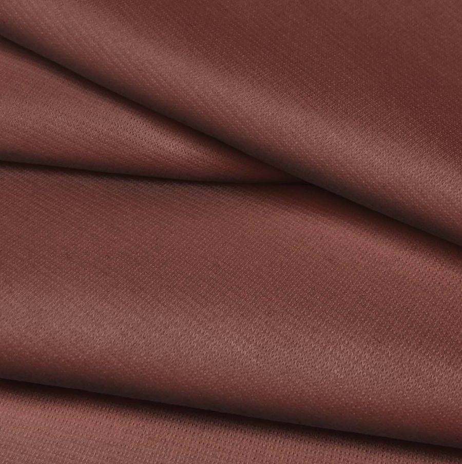 La tela base es el Punto Roma Elástico - Lyon, un tipo de tela de punto compuesta de 97% poliéster y 3% elastano, con un gramaje de 282 gr/m2 y una anchura de 150 cm. El color liso impreso es marrón sepia, con un CMYK de 35 72 65 47.