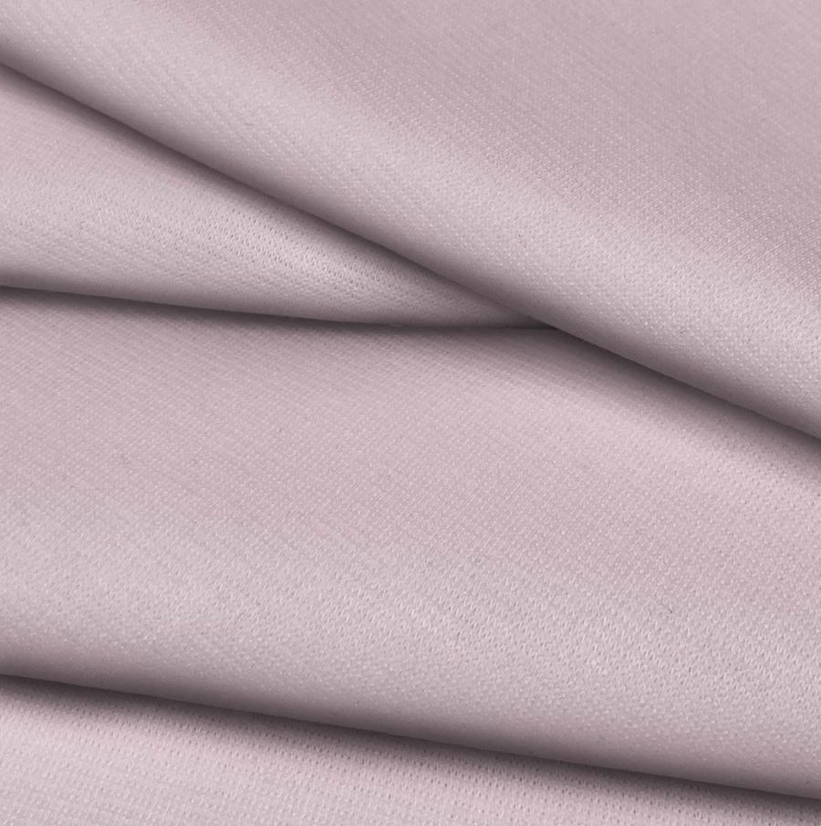 La tela base es el Punto Roma Elástico - Lyon, una tela de punto con una composición de 97% poliéster y 3% elastano. Su gramaje es de 282 gr/m2 y tiene un ancho de 150 cm. El color impreso es rosa/rosa rosada, con una combinación de tinta cyan: 8, magenta: 25, yellow: 9 y black: 0, según el CMYK 8 25 9 0. El color secundario es un rosa tenue con un matiz ligeramente rosado. Este color evoca sentimientos de calidez, dulzura e inocencia. Es un color muy versátil que combina bien con una gran variedad de colores, desde tonos pastel hasta colores vibrantes y más intensos.