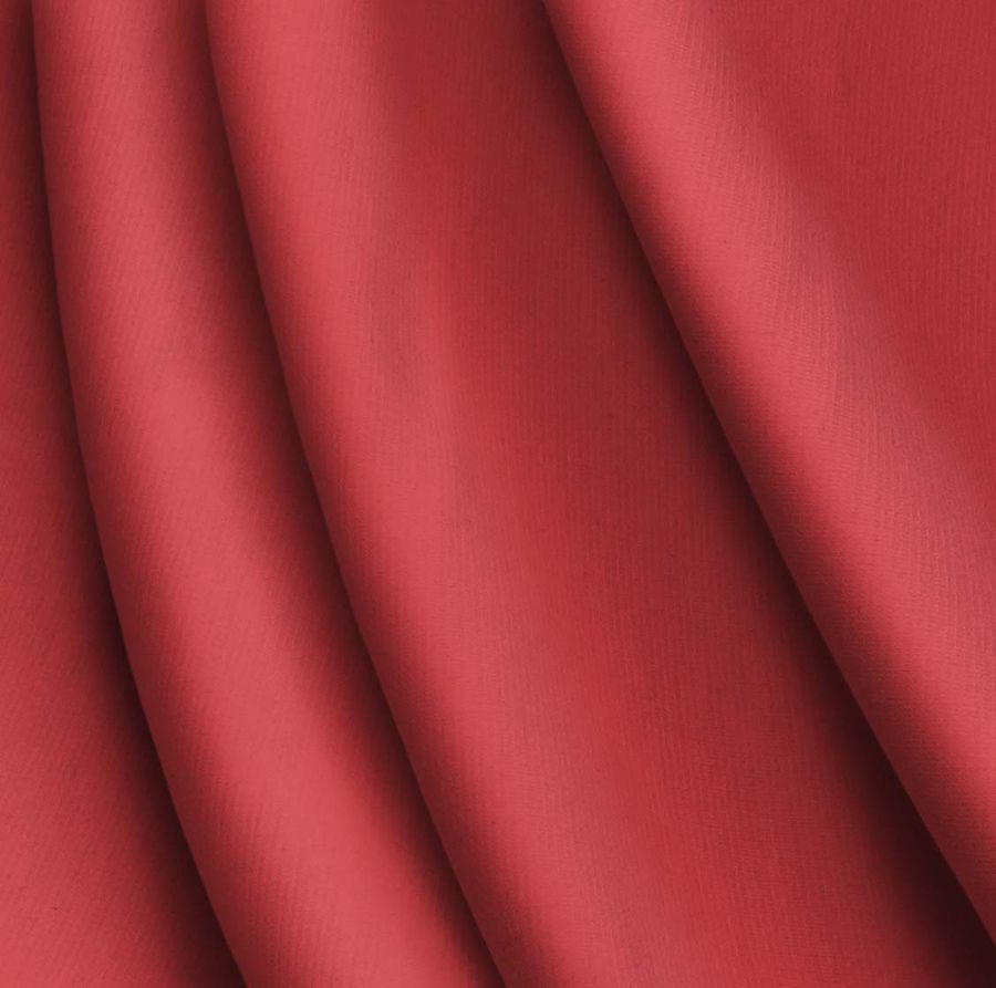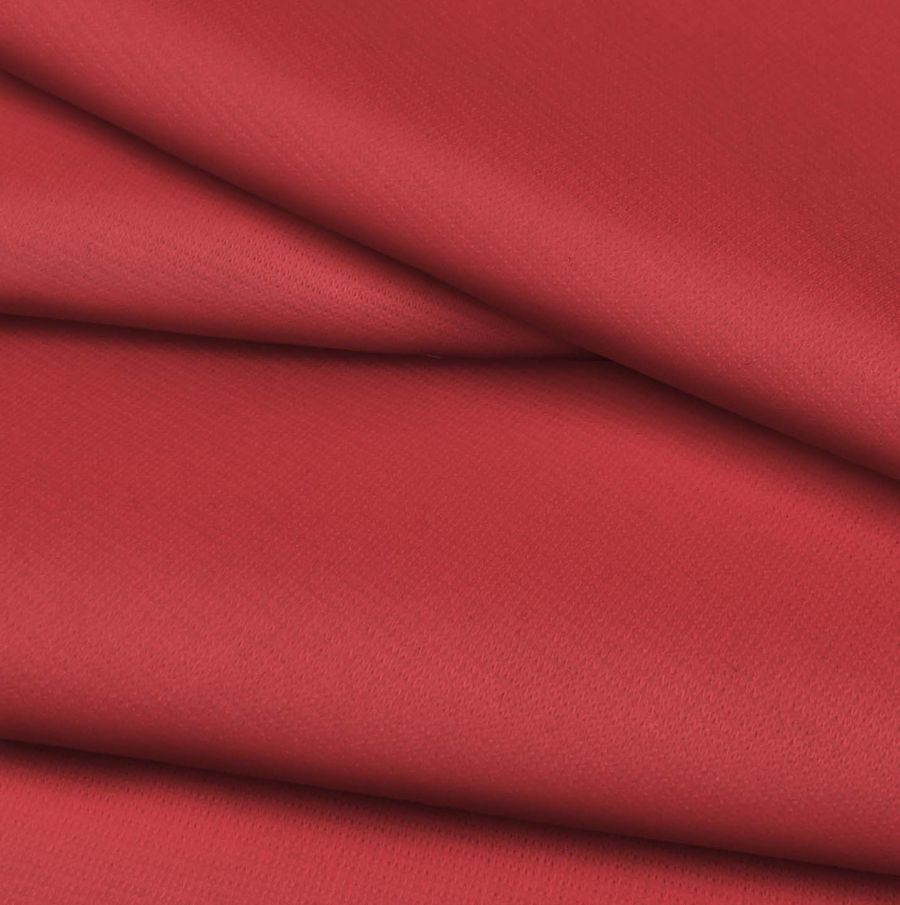 La tela base es Punto Roma Elástico - Lyon, una tela de punto compuesta por 97% poliéster y 3% elastano, con un gramaje de 282 gr/m2 y una anchura de 150 cm. El color liso impreso es Rojo Ladrillo refractario, el cual está compuesto por una combinación de tintas Cyan (16), Magenta (87), Yellow (71) y Black (6) en el espacio de color CMYK. Este color simboliza la fuerza y el poder, es un color cálido y vibrante que transmite energía y vitalidad.
