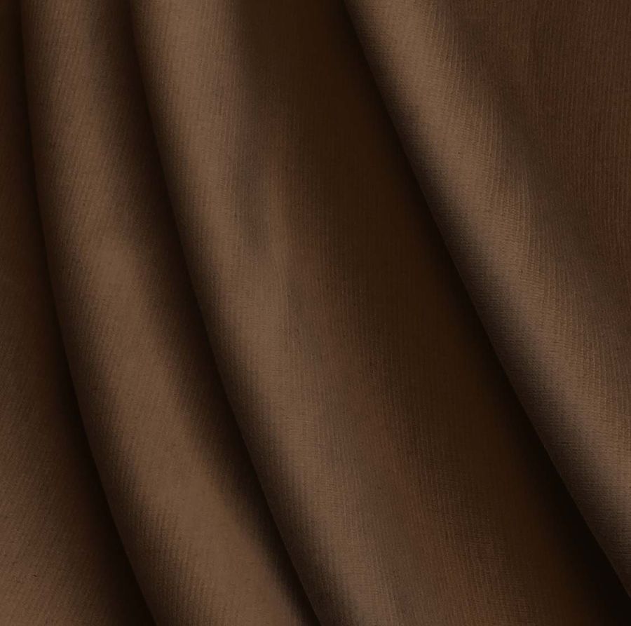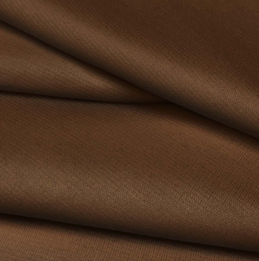La tela base es el Punto Roma Elástico - Lyon, compuesta por 97% poliéster y 3% elastano, con un gramaje de 282 gr/m2 y un ancho de 150 cm. La tela es de punto y tiene una textura suave al tacto, lo que la hace ideal para moda de invierno, como pantalones, vestidos, tops, camisetas, jerseys, y también para textiles de hogar, como servilletas. El color liso impreso es un marrón oscuro con CMYK de 43 70 91 64, que combina particularmente bien con tonos neutros como el beige, blanco y gris. Cabe destacar que el tejido está impreso a una sola cara por impresión digital textil.