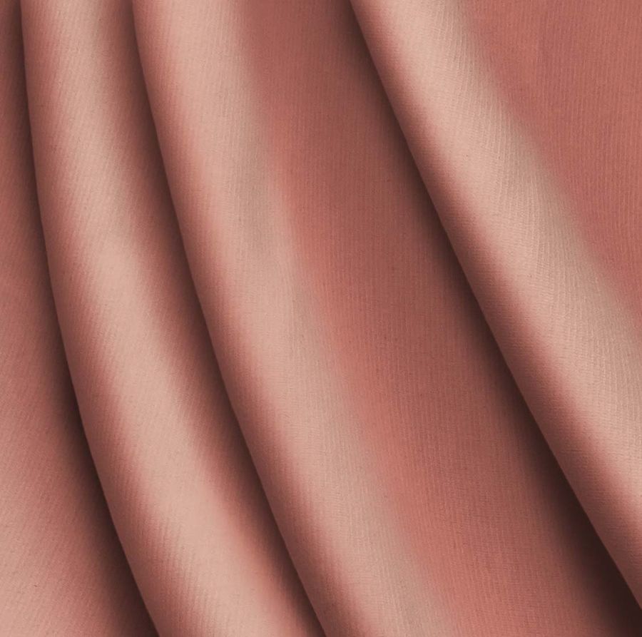 La tela base es el Punto Roma Elástico - Lyon, una tela de punto compuesta por 97% poliéster y 3% elastano, con un gramaje de 282 gr/m2 y un ancho de 150 cm. En cuanto al color liso impreso, presenta tonalidades de rosa y coral rosa, reflejando un CMYK de 15 60 52 4. Esta tonalidad combina especialmente bien con colores como el blanco, el gris claro o el azul pálido.