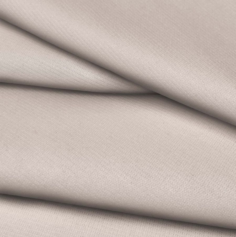 La tela base es Punto Roma Elástico - Lyon, de un composición de 97% POLIÉSTER y 3% ELASTANO, con un gramaje de 282 gr/m2 y un ancho de 150cm. El color liso impreso que se encuentra disponible es de color Crudo y Blanco antiguo, con un CMYK de 5 15 18 0. El color secundario es de un aspecto beige claro suave y cálido, que combina perfectamente con colores como el negro, el marrón y el gris. Cabe destacar que la tela está impresa con este color liso a una sola cara por impresión digital textil.