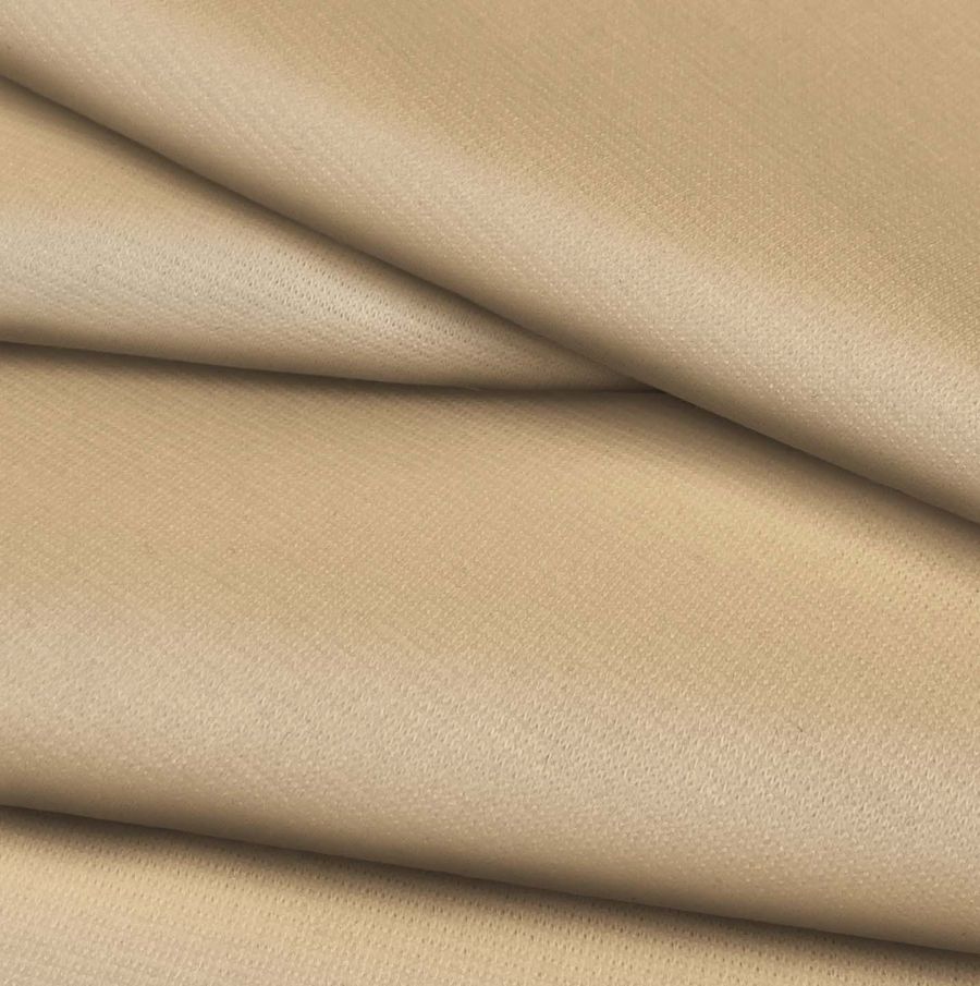 La tela base es el Punto Roma Elástico - Lyon, compuesta por 97% de poliéster y 3% de elastano con un peso de 282 gr/m2. El color liso impreso es naranja claro con los siguientes valores de CMYK: 9 26 47 1. El color primario es el amarillo, lo que le da un tono cálido y luminoso al naranja claro. Combina muy bien con tonos marrones, verdes y azules claro para crear una sensación de relajación y serenidad en el entorno.