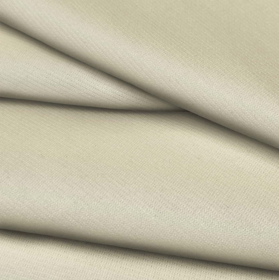 La tela base es el Punto Roma Elástico - Lyon, una tela de punto compuesta por 97% POLIÉSTER y 3% ELASTANO, con un gramaje de 282 gr/m2 y un ancho de 150 cm. Su color liso impreso es Crudo, una tonalidad suave y cálida de Seda de maíz, con un CMYK de 4 5 28 0. El color secundario es un tono amarillo verdoso, que combina muy bien con colores tierra, verdes y azul marino.