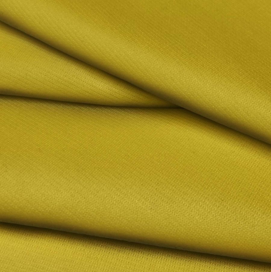 La tela base de este tejido es el punto roma elástico Lyon, con composición de 97% poliéster y 3% elastano, y un gramaje de 282 gr/m2. Su ancho es de 150 cm y su color liso impreso consta de un amarillo y olivo con un CMYK de 26 30 98 10. El amarillo representa el optimismo, el calor y la fuerza vital, mientras que el olivo se asocia con la paz, la sabiduría y la armonía.